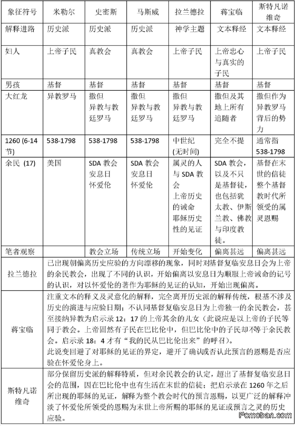 鉴于本会一般教友对启示录第12章均较为熟悉,我们的解读也就相应地简化处理,以列表的方式,附在对比表里。
