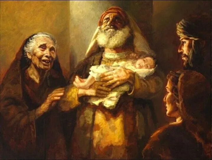 路2:25-32“在耶路撒冷有一个人名叫西面。这人又公义又虔诚,素常盼望以色列的安慰者来到,又有圣灵在他身上。他得了圣灵的启示,知道自己未死以前,必看见主所立的基督。他受了圣灵的感动,进入圣殿,正遇见耶稣的父母抱着孩子进来,要照律法的规矩办理。西面就用手接过他来,称颂上帝说:'主啊,如今可以照你的话,释放仆人安然去世;因为我的眼睛已经看见你的救恩,就是你在万民面前所预备的,是照亮外邦人的光,又是你民以色列的荣耀。'”