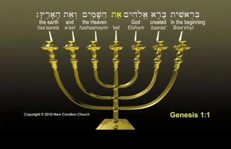 有趣的是,这个词出现了两次。第一次出现在第四个字,第二次出现在第六个字“ְְוֵאת”。犹太人说,这就代表基督的两次降临。这个词的左边两个字母,就是ִאת(道),由希伯来文的第一个字母与最后一个字母组成。所以,耶稣在《启示录》中宣称自己是“首先的、也是末后的”。从这里也能看出希伯来文的奥妙。