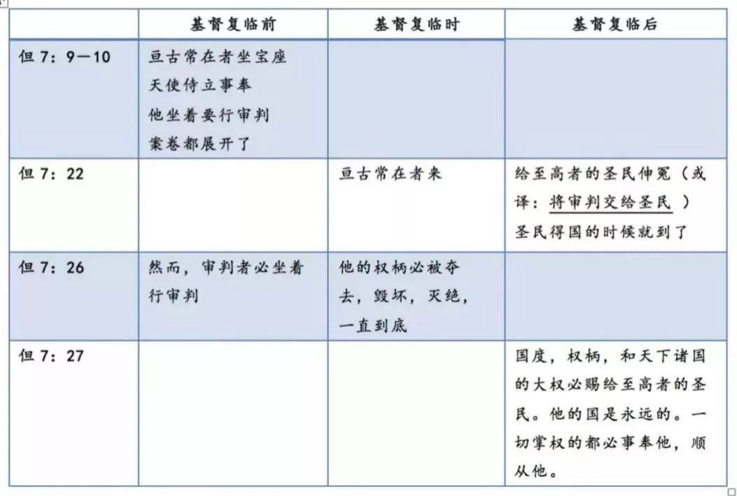 我们现在就看一下,但7:9-10,22,26-27是不是表明都是复临前的审判,如果的确表明小角和圣徒在复临前受审判,那么就可以推出来小角受审判的时间就是圣徒受审判的时间。但是如果我们能够说明但7:9-10,22,26-27这三处经文并不都是指复临前的审判,而且但8:14也不是对小角的审判,那么奈特的推论就是错误的。