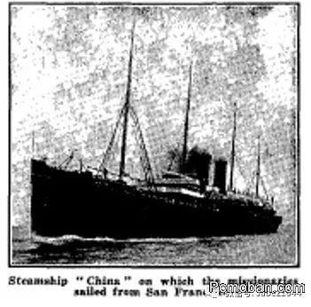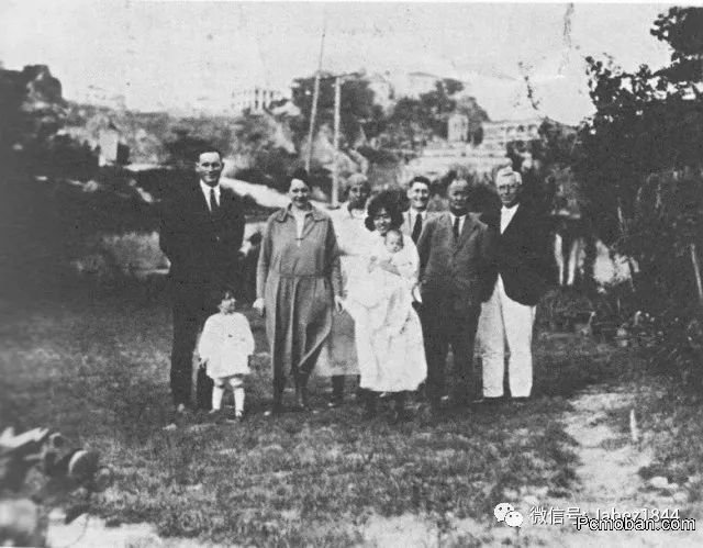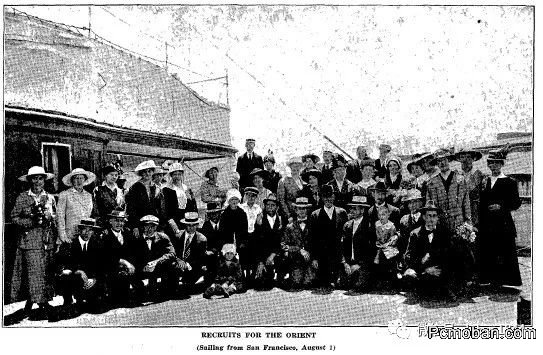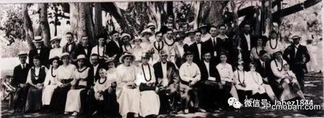 他们途经檀香山时上岸留影,其中摩尔士夫妇于前排左 6与5 。