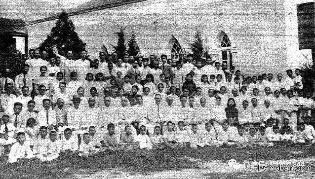 大墙根福音堂北侧,教会人员与三育学校师生合影。(1936年)
