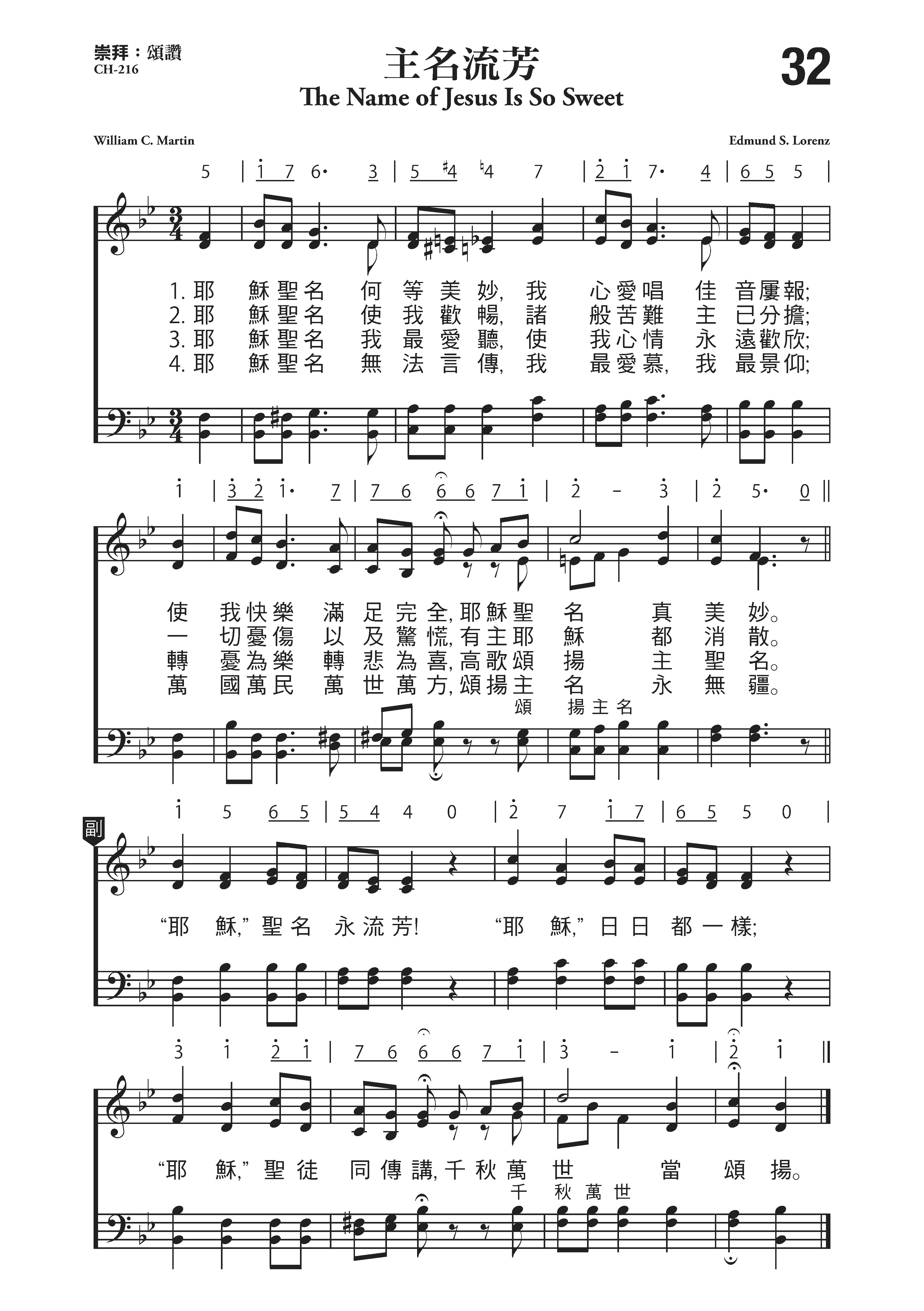 “耶稣圣名何等美妙,我心爱唱佳音屡报;
