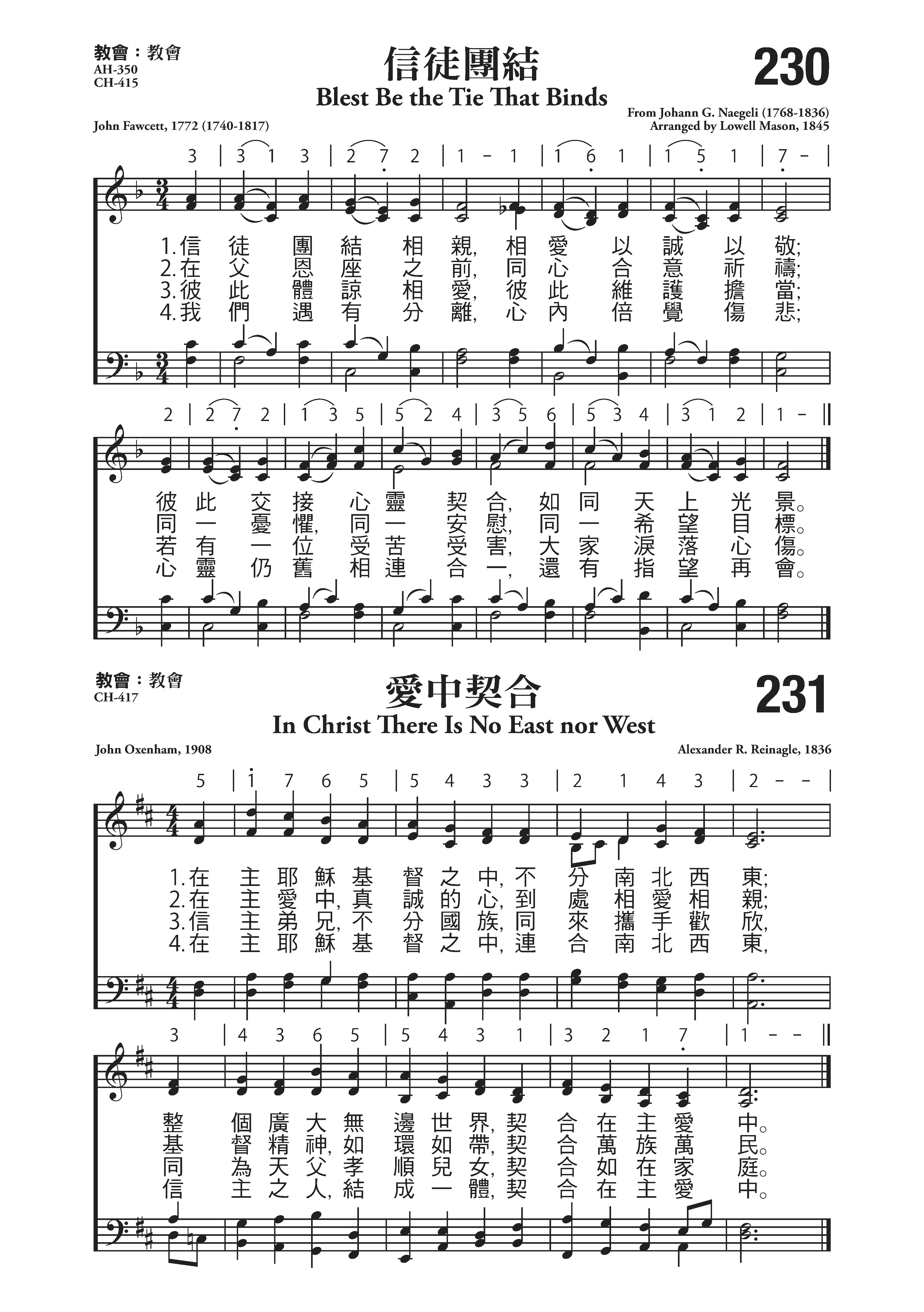 福西特(John Fawceit 1740-1817,7,25)作词(1782年) ,内格里(H.G.Nagelpi.1773,5,26-1836,12,26)作曲,梅森(见《赞美诗》第76首介绍)改编(1845年)