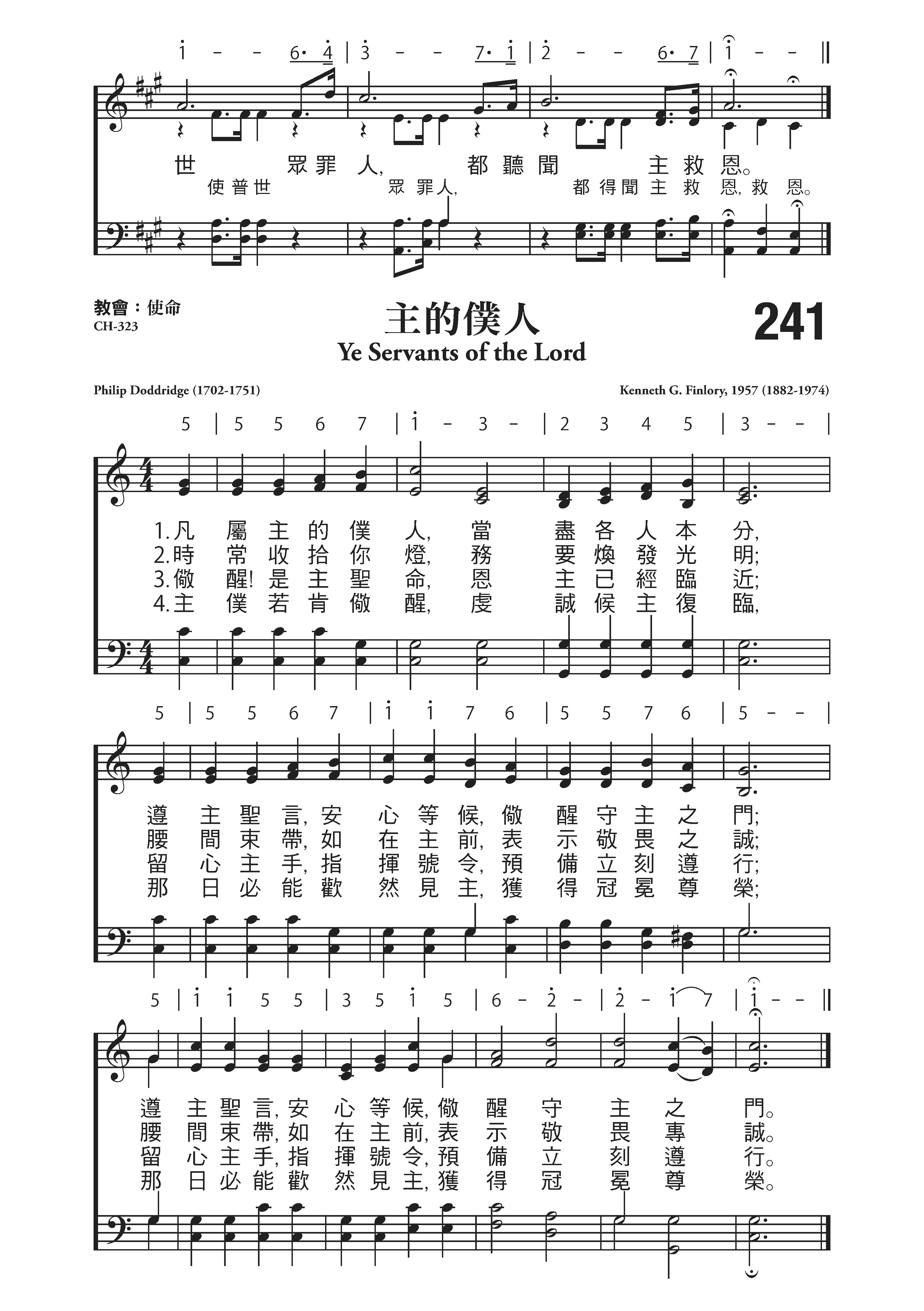 多德里奇(Philip Doddridge,1702,6,26-1751,10,25)作词,曲作者佚名