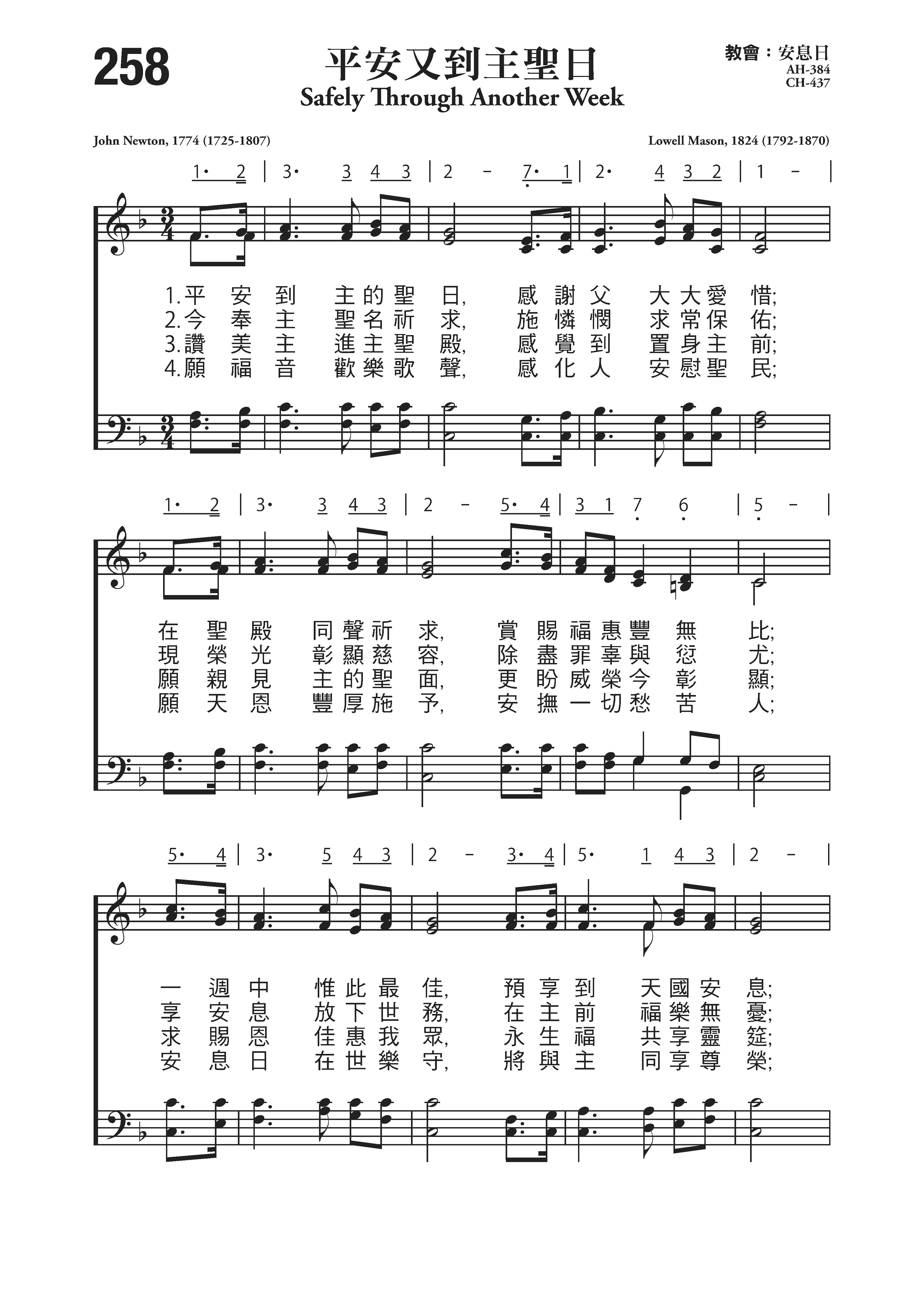 根据约翰.牛顿(见《赞美诗》第36首介绍)原词(1774年)改编,梅森(见《赞美诗》第38首介绍)作曲