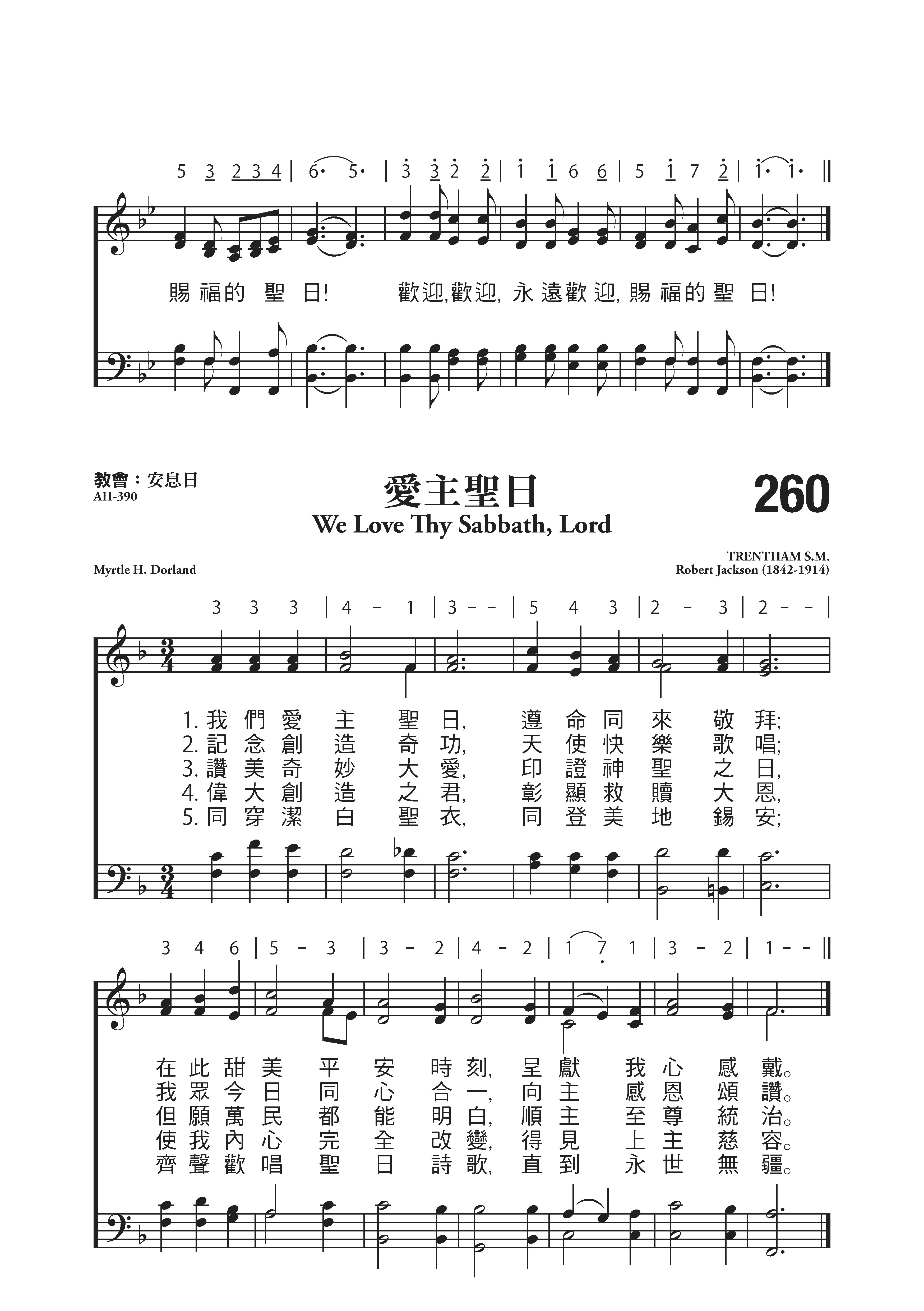 默特尔.多兰(Myrtle H.Dorland,1920- ,生平不详)作词;罗伯特.杰克逊( Robert Jackson,1842-1914)作曲