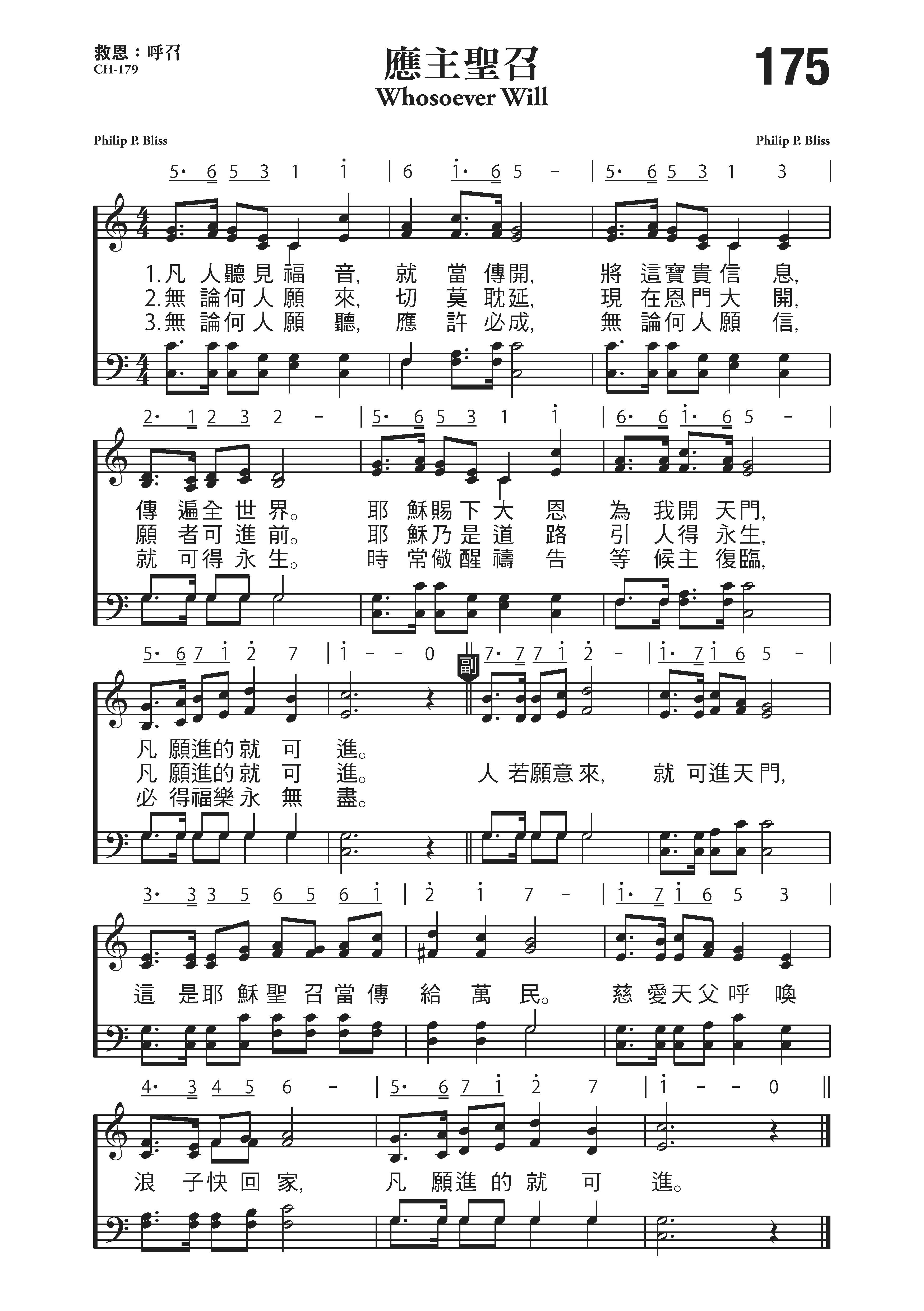 布利斯(P.P.Bliss 1838,7,9-1876,12,29,见165首介绍)作词作曲