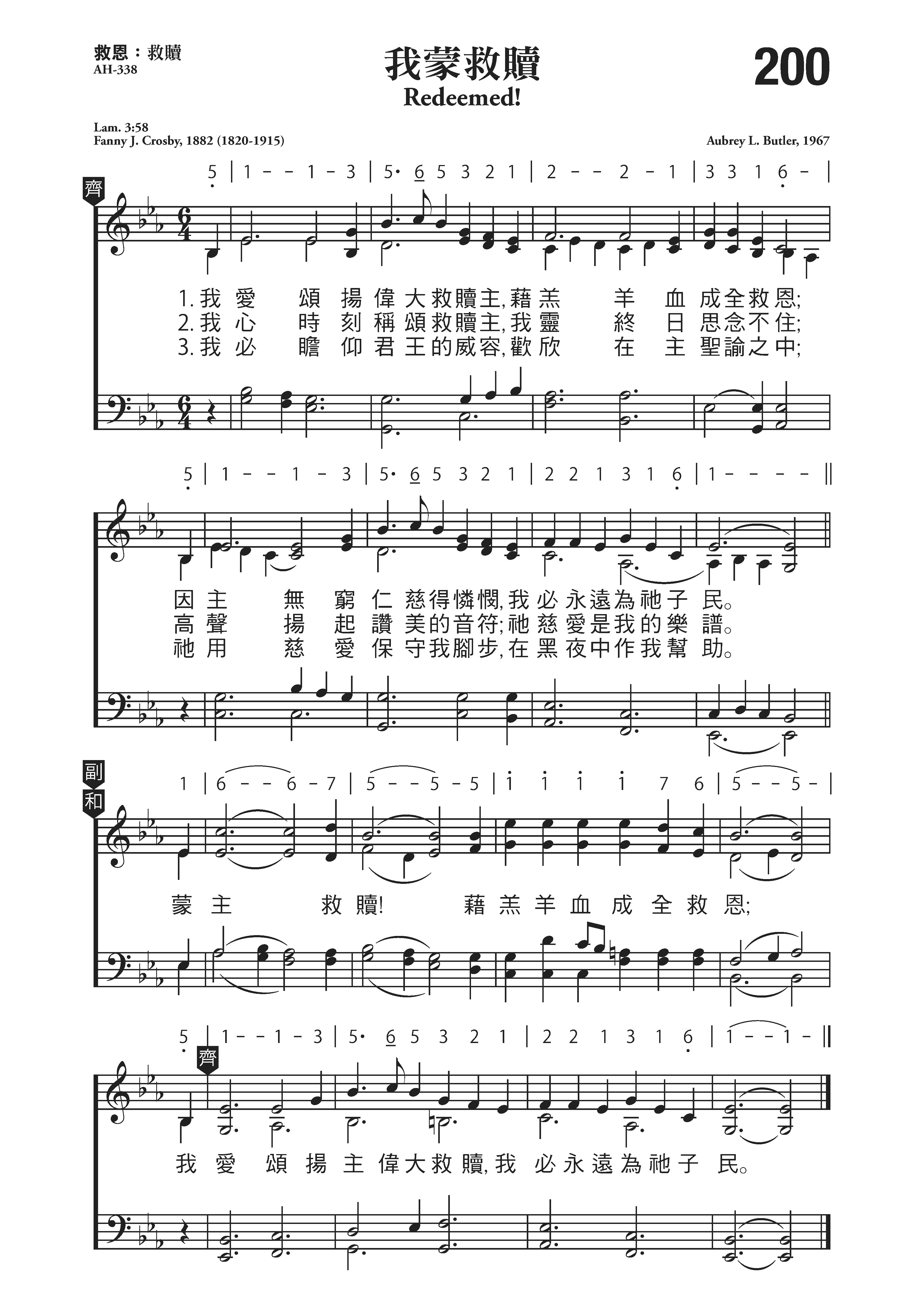 克罗斯比(见12首介绍)作词(1882年);奥布里.巴特勒(Aubrey L.Butler,1933-)作曲(1967年)