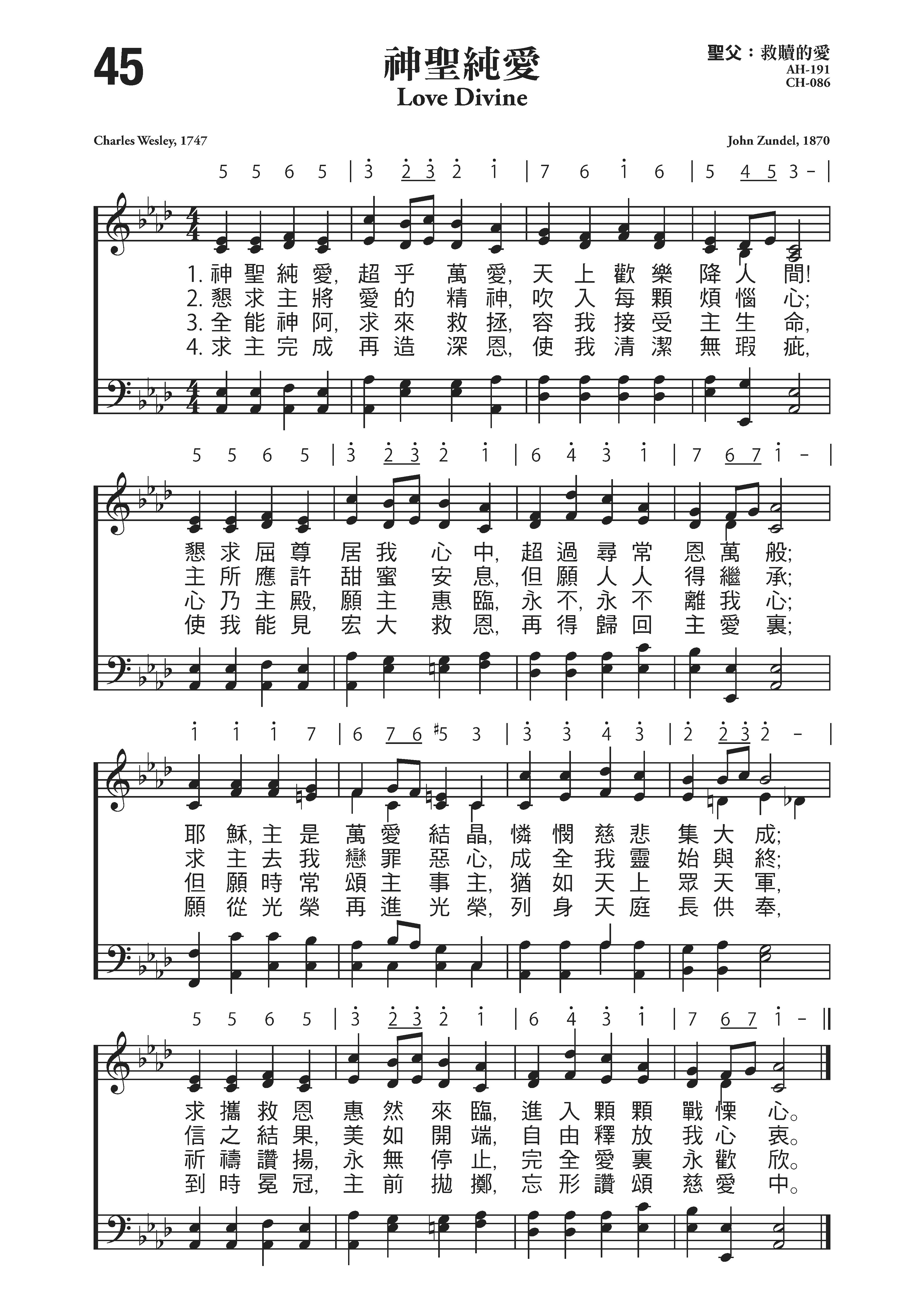 这是卫斯理最有价值的圣诗之一,表现了他崇高的信仰和对于上帝之爱的信靠。这种奇妙的大爱,超乎世界上一切情爱,无比纯洁和慈怜,实在令人五体投地,赞叹不绝。