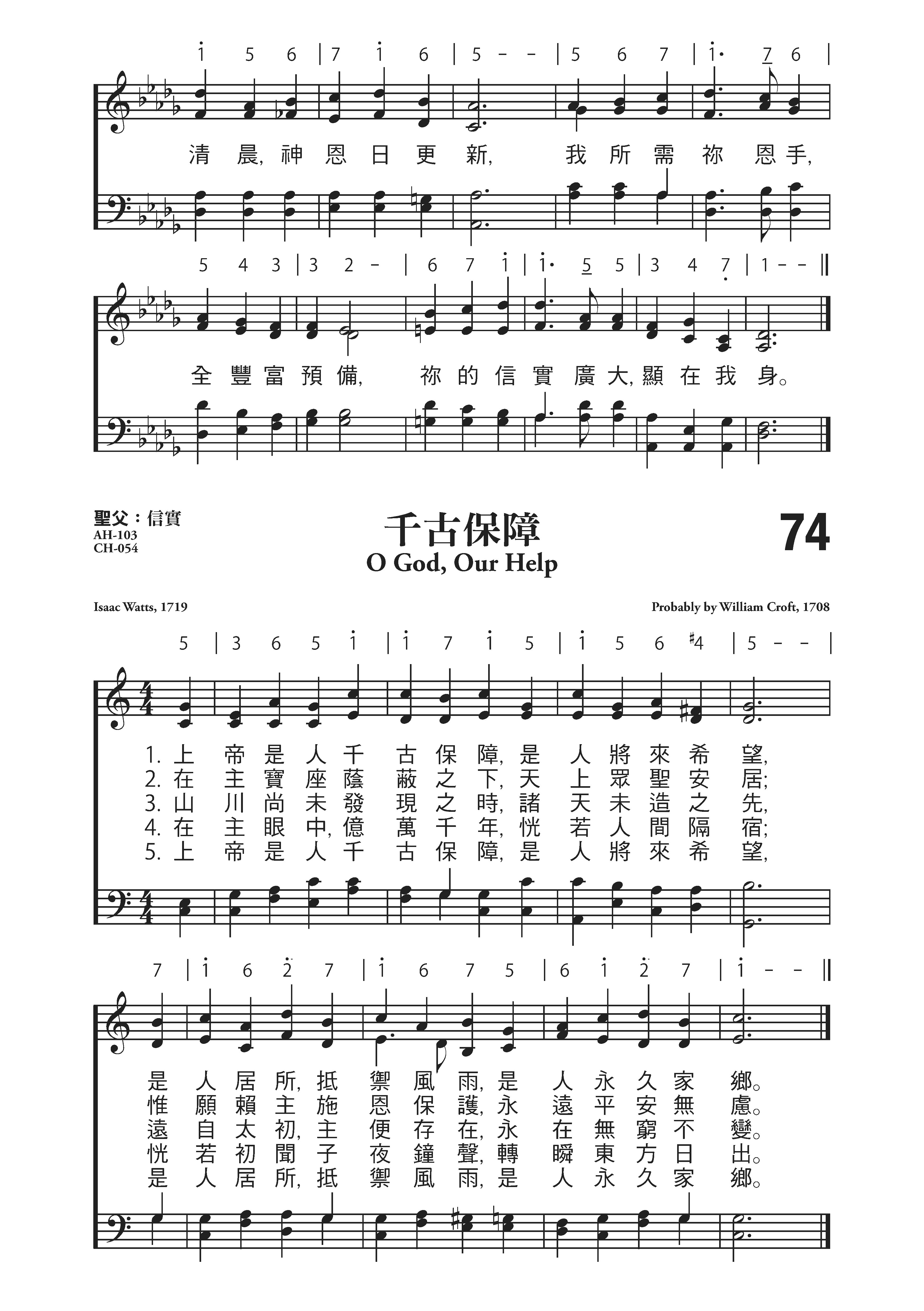 瓦茨(见第2首介绍)作词(1719年),克罗夫特(W.Croft〈1678-1727,8,14〉改编并配和声(1708年)
