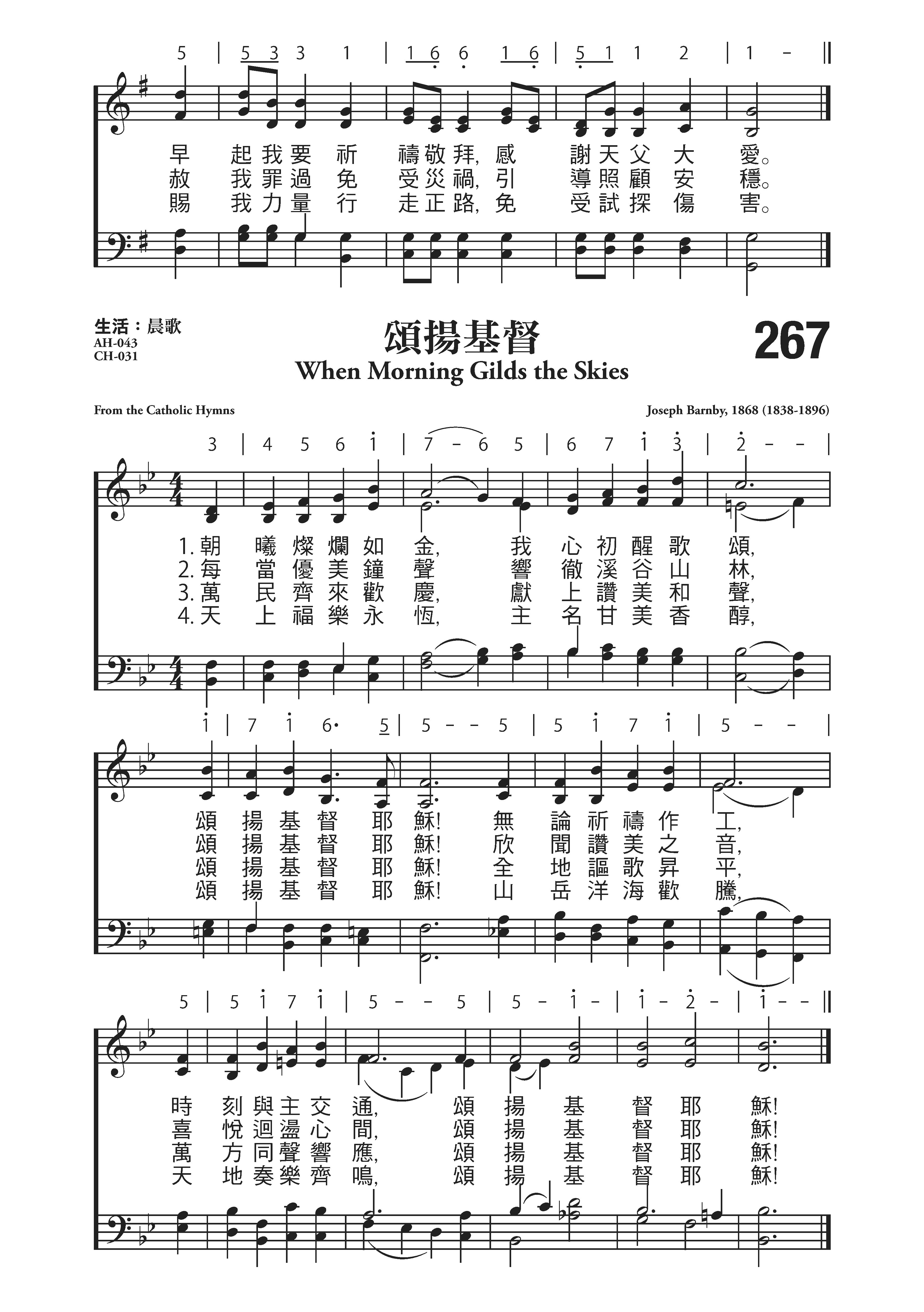 卡斯沃尔(Edward Caswall,1814,7,15-1878,1,2)译自1800年德语文本,巴恩比(Joseph Barnby,1838,8,12-1896,1,28,见187首介绍)作曲(1868年)。