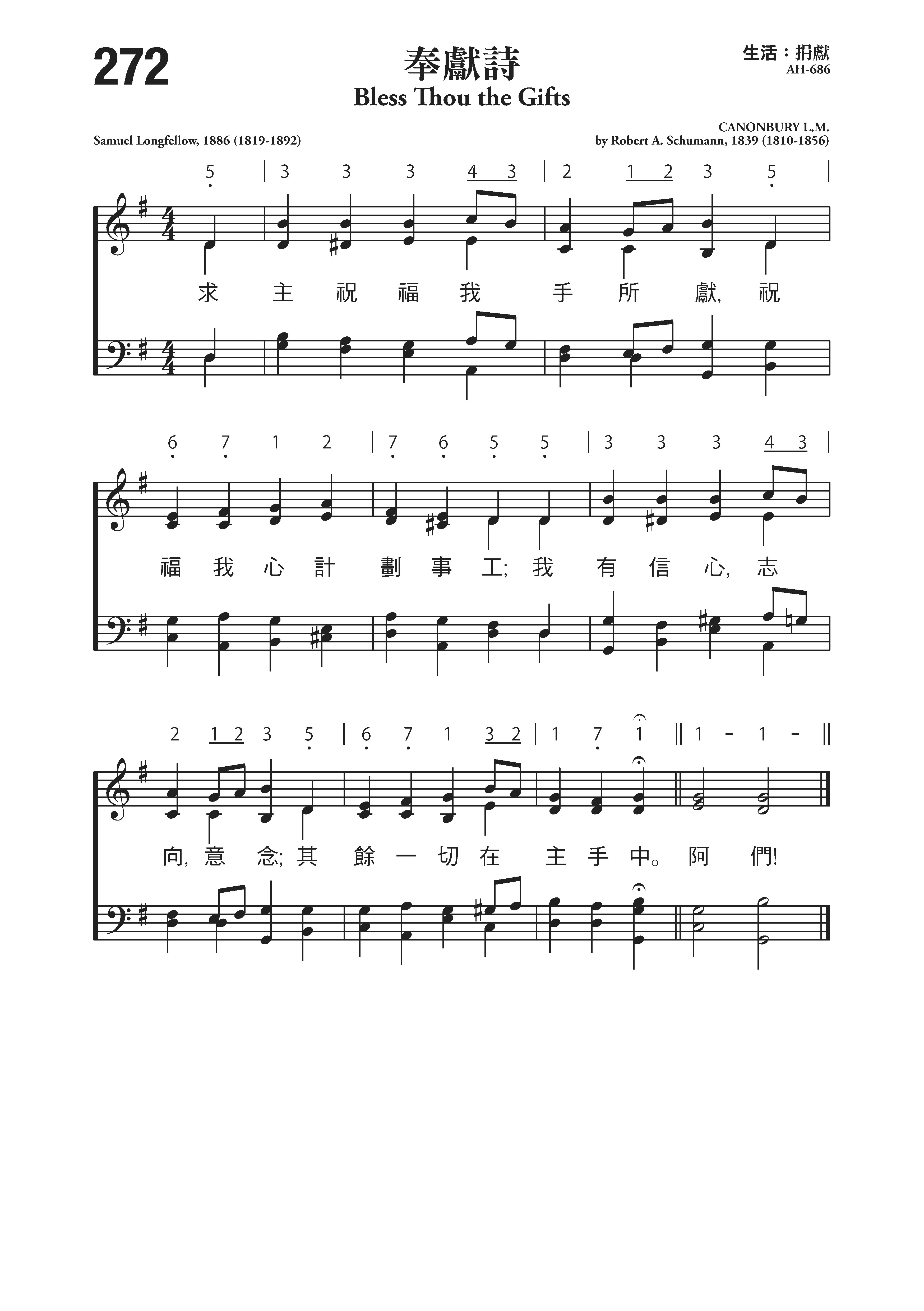 塞缪尔.朗费罗(Samuel Longfellow,1819.6.18-1892)作词(1886年);舒曼(见262首介绍)作曲(1839年)
