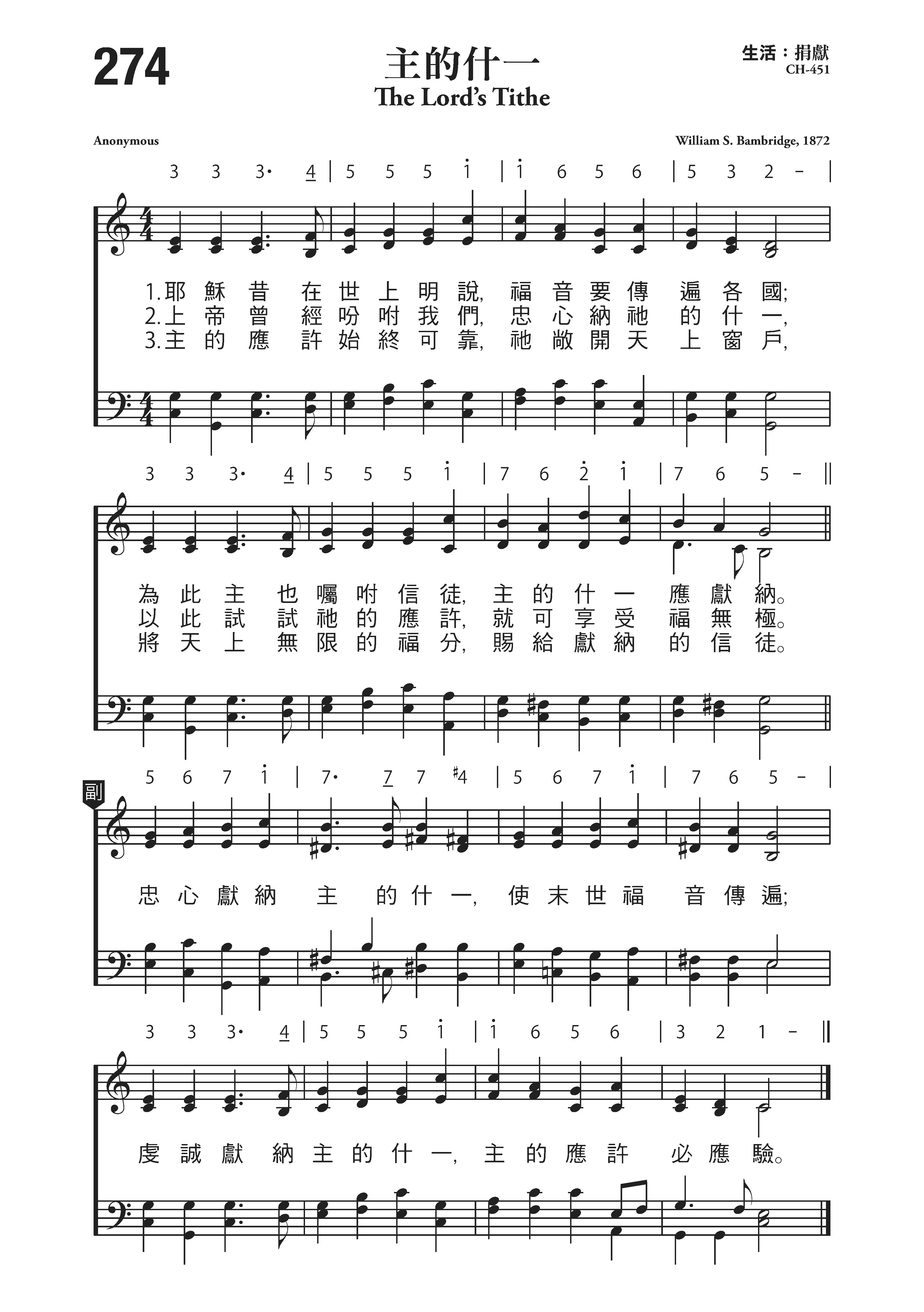 词作者佚名,班布里奇(William S.Bambridge,1842,7,18-1923,1,20)作曲(1872年)