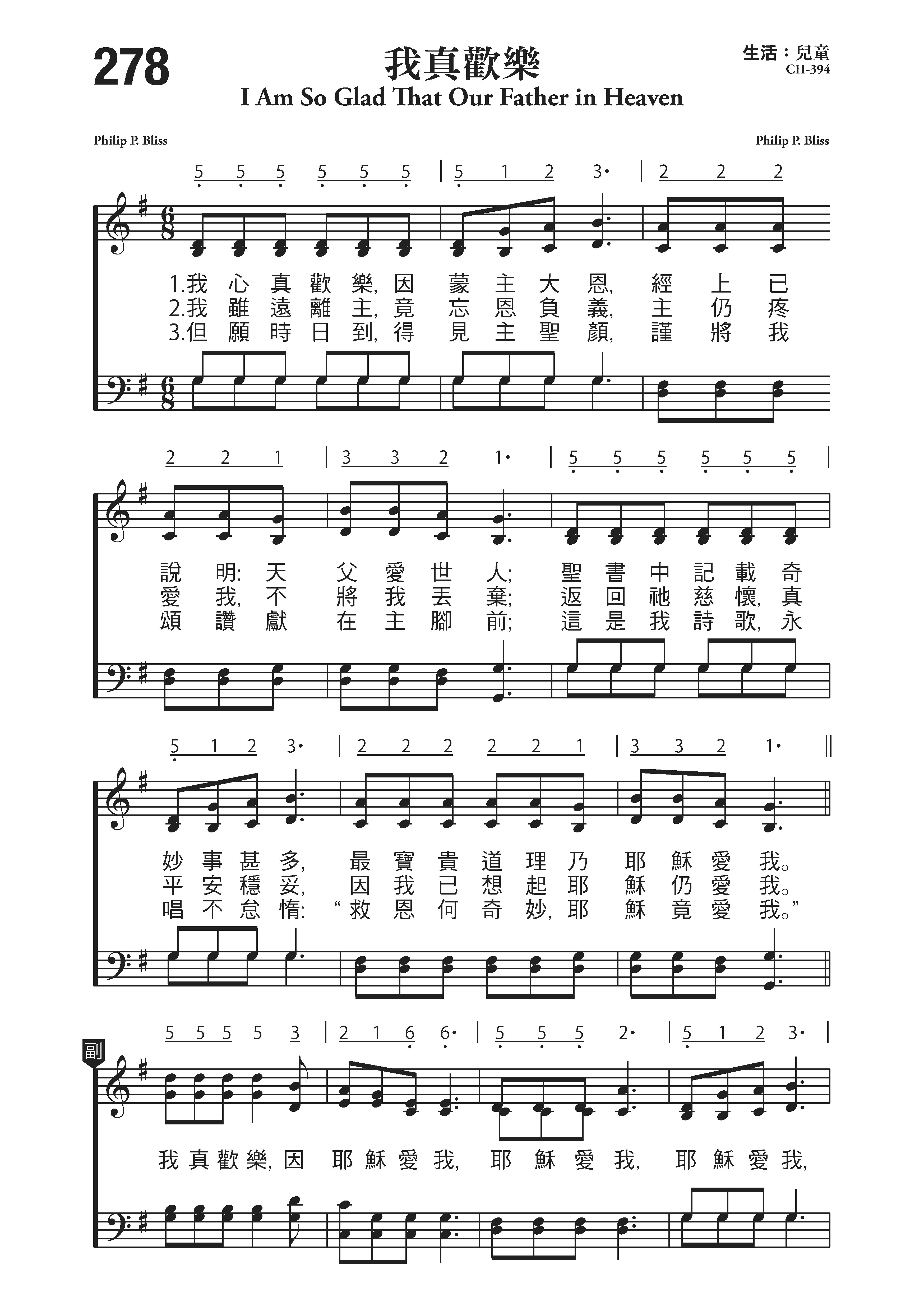 1870年6月,在一次奋兴会上,布利斯听见会众正在大声高唱“我们真是爱耶稣”,一连唱了十几遍。布利斯听着,听着,觉得象这样唱下去实在太单调乏味了,仅仅高声呼喊“我们爱耶稣”,而不说出我们为什么要爱他,似乎太空洞。我们应该先说主耶稣是何等地爱我。于是动手写了这首“我真喜欢,因为天上真神,圣书明明说起他的爱心”;并且为它配曲,调名为《耶稣竟爱我》。