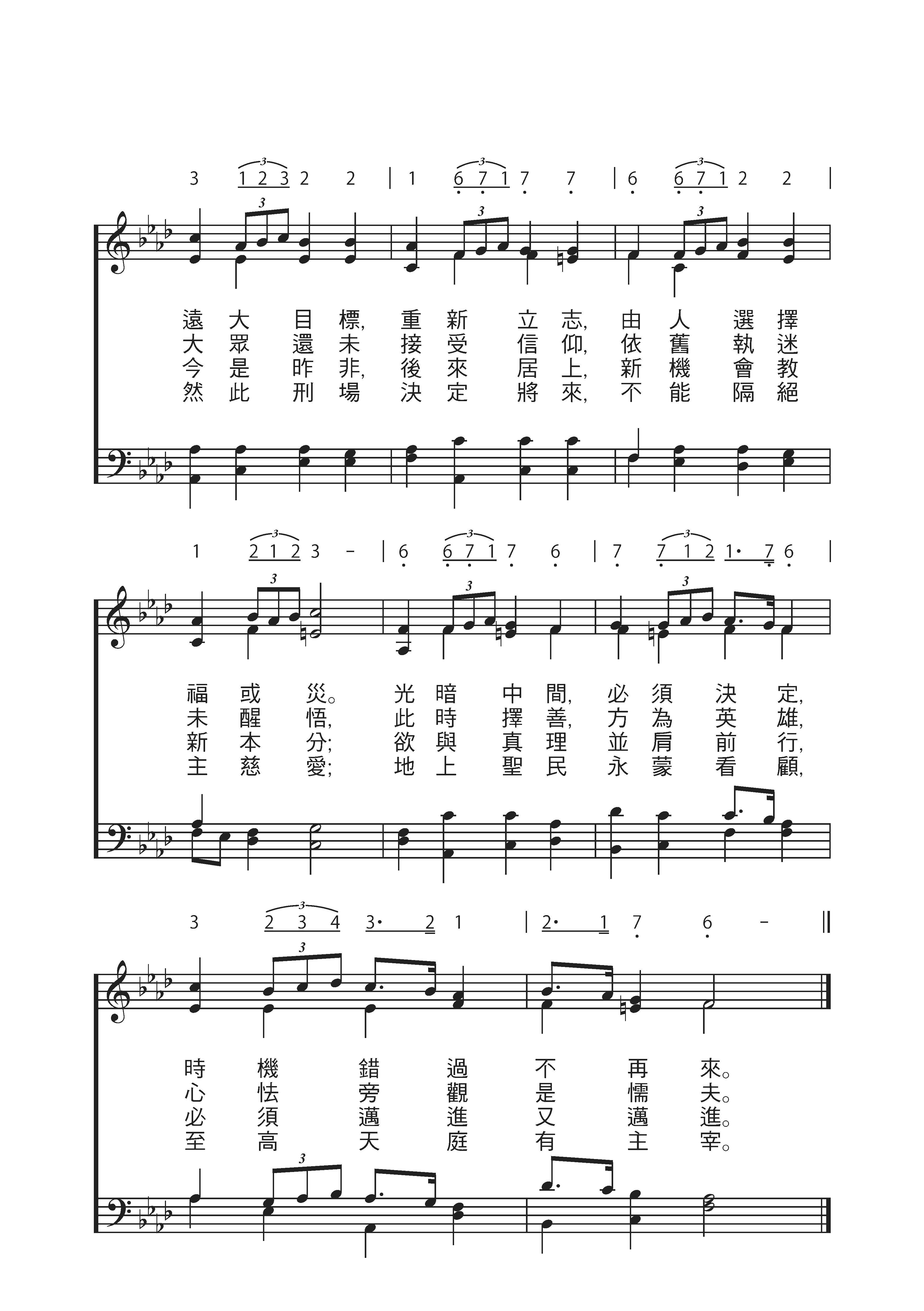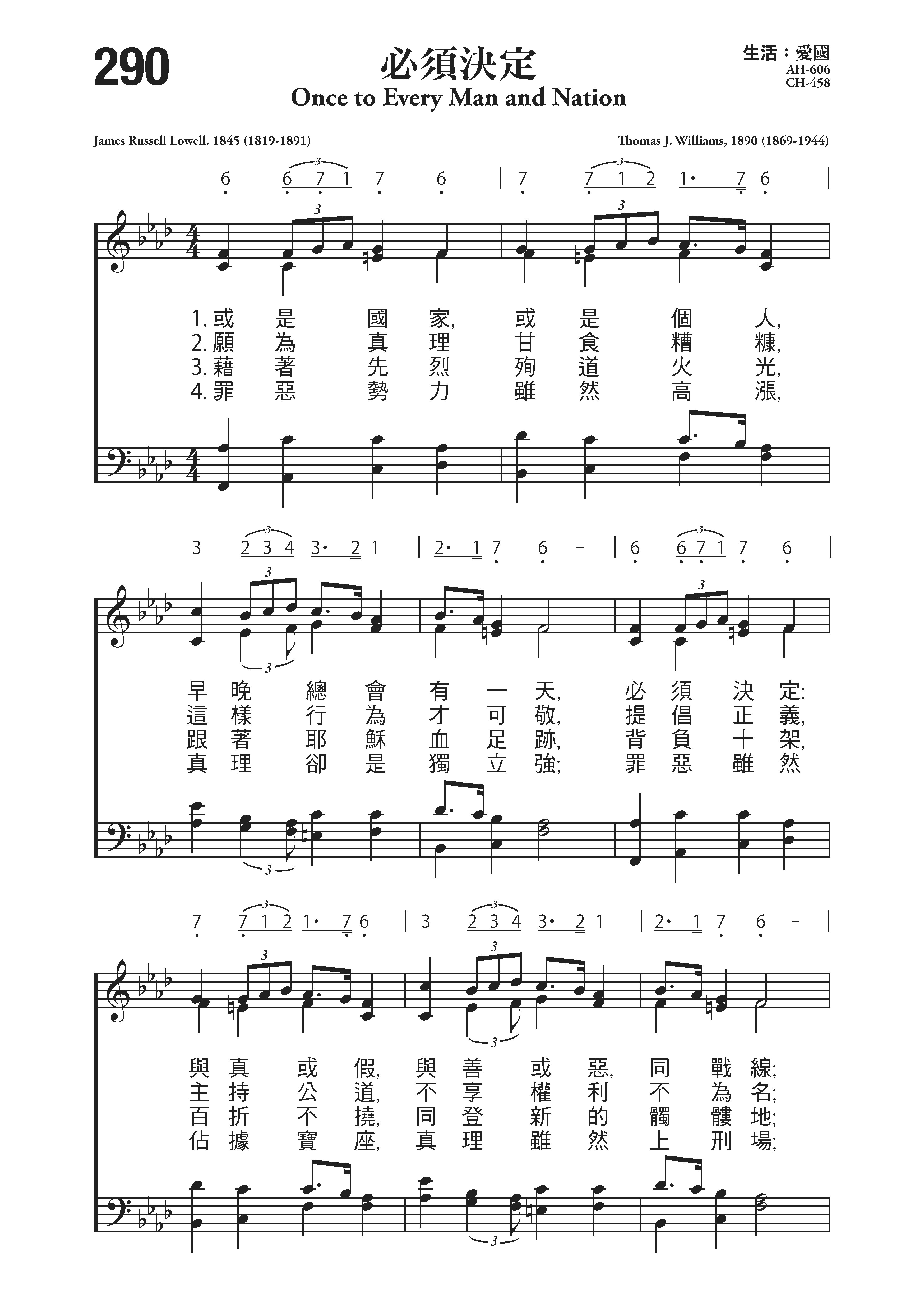 《必须决定》原是罗威尔为抗议墨西哥战争而写的一首诗,十八节各五行,每行15个音节,标题为《现代危机》。后经英国公理会圣诗学者霍德改编成赞美诗。