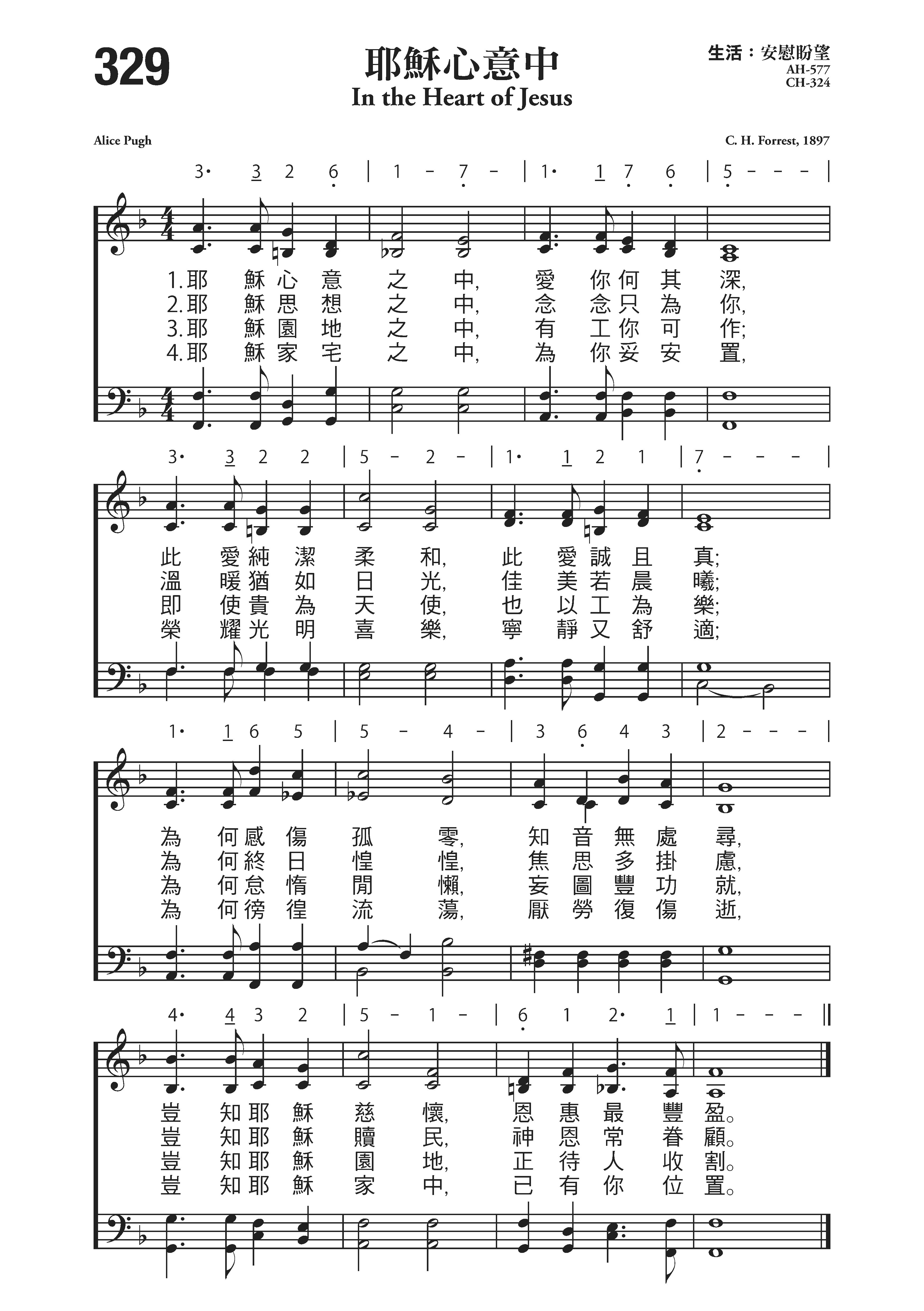 爱丽丝.皮尤(Alice Pugh)作词,福里斯特(C.H.Forrest)作曲(1897年)