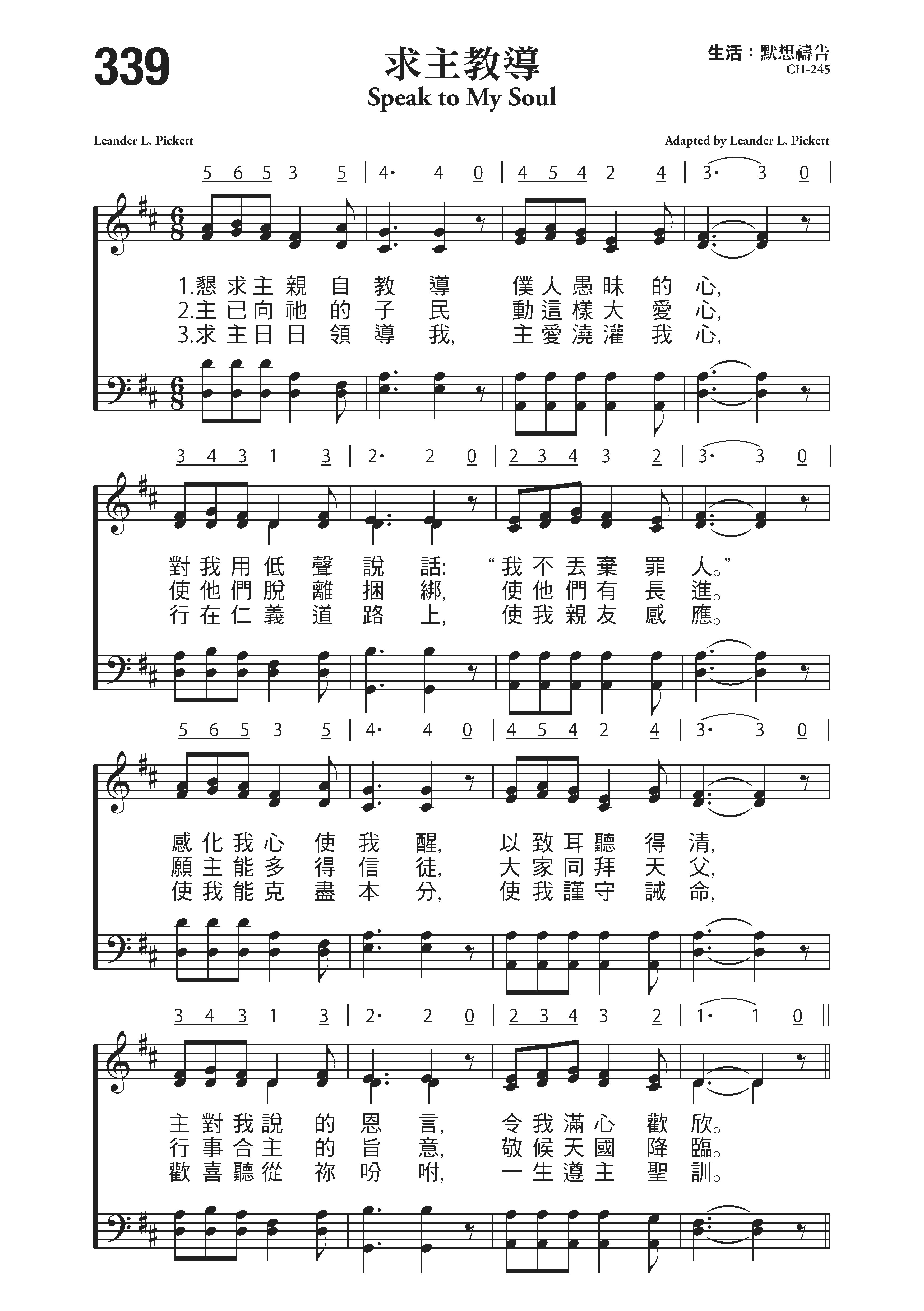 在这首诗歌中,作者持住救主永不丢弃罪人的奇妙应许,恳求主启发,教导,带领,引导祂的子民,使他们能够明白祂的旨意,随从公义的道路,遵循主的训诲。