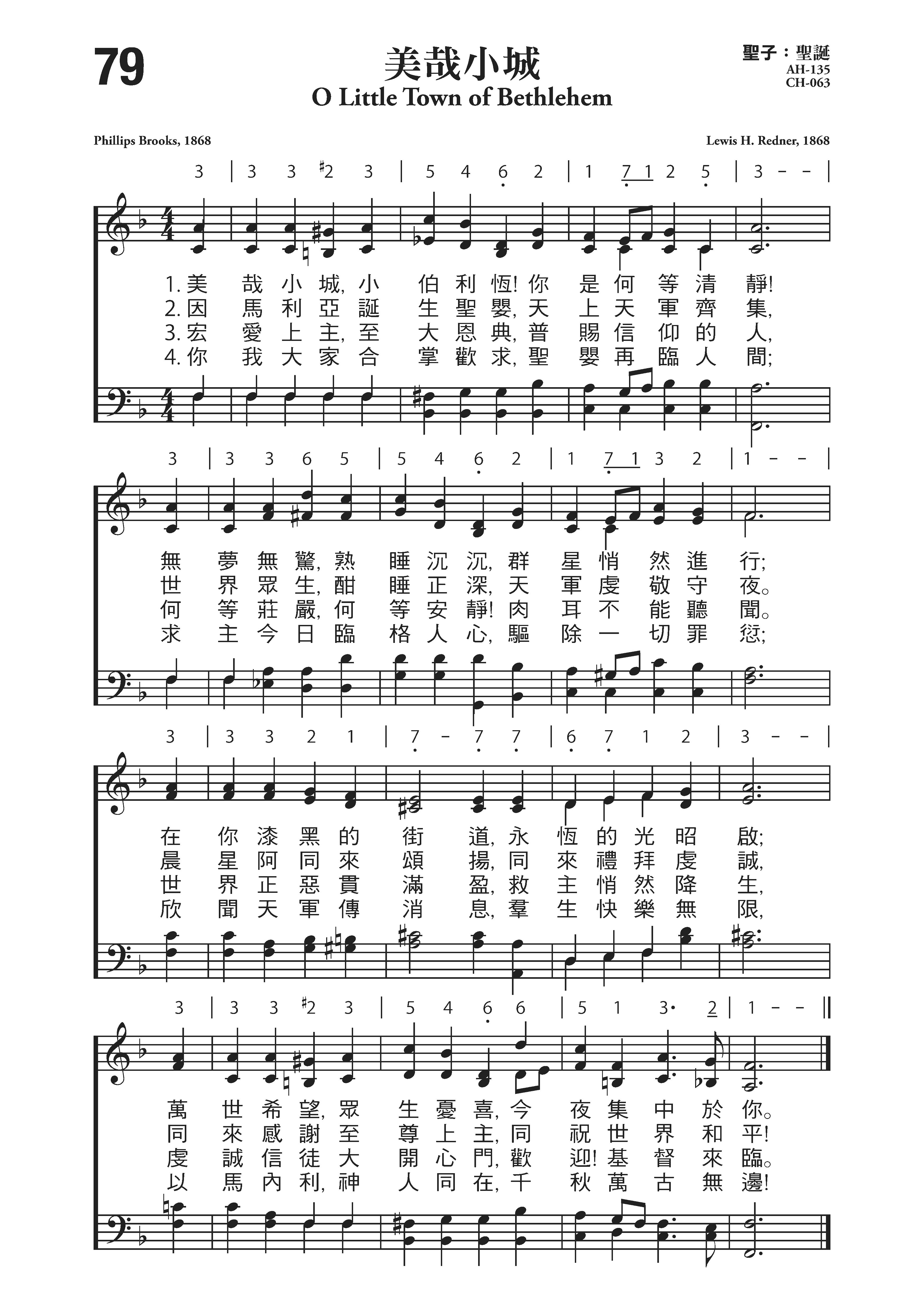 布鲁克斯(P.Brooks,1835,12,13-1893,1,23)作词(1868年),雷德纳(L.H.Redner,1831,12,15-1908,8,29)作曲(1868年)