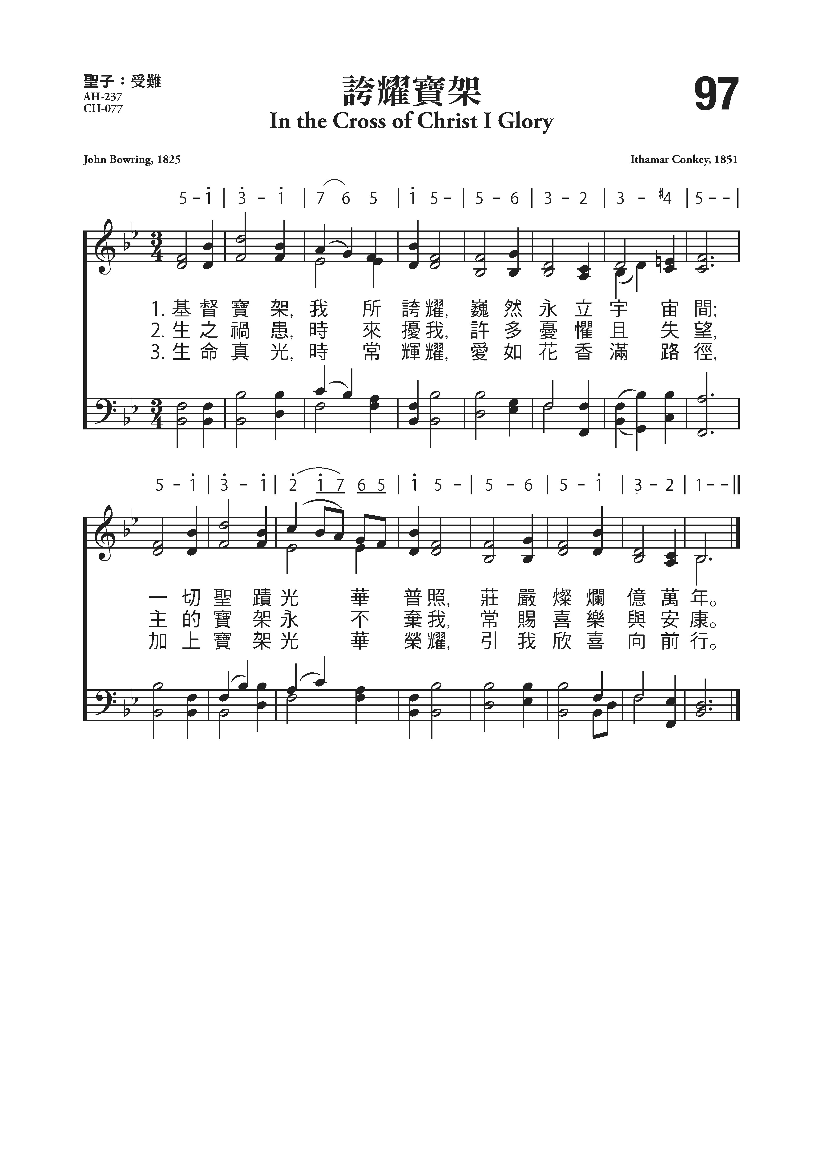 曲作者康基是美国浸信会教堂的管风琴诗和唱诗班指挥,又是男低音歌手。1861年起,他领导一个四重唱小组到各地巡回献唱。本曲写于基督受难周,调名《拉斯本(Rathbun)》,是为了纪念一位不畏风雨坚持到堂献唱的女高音拉斯本夫人。