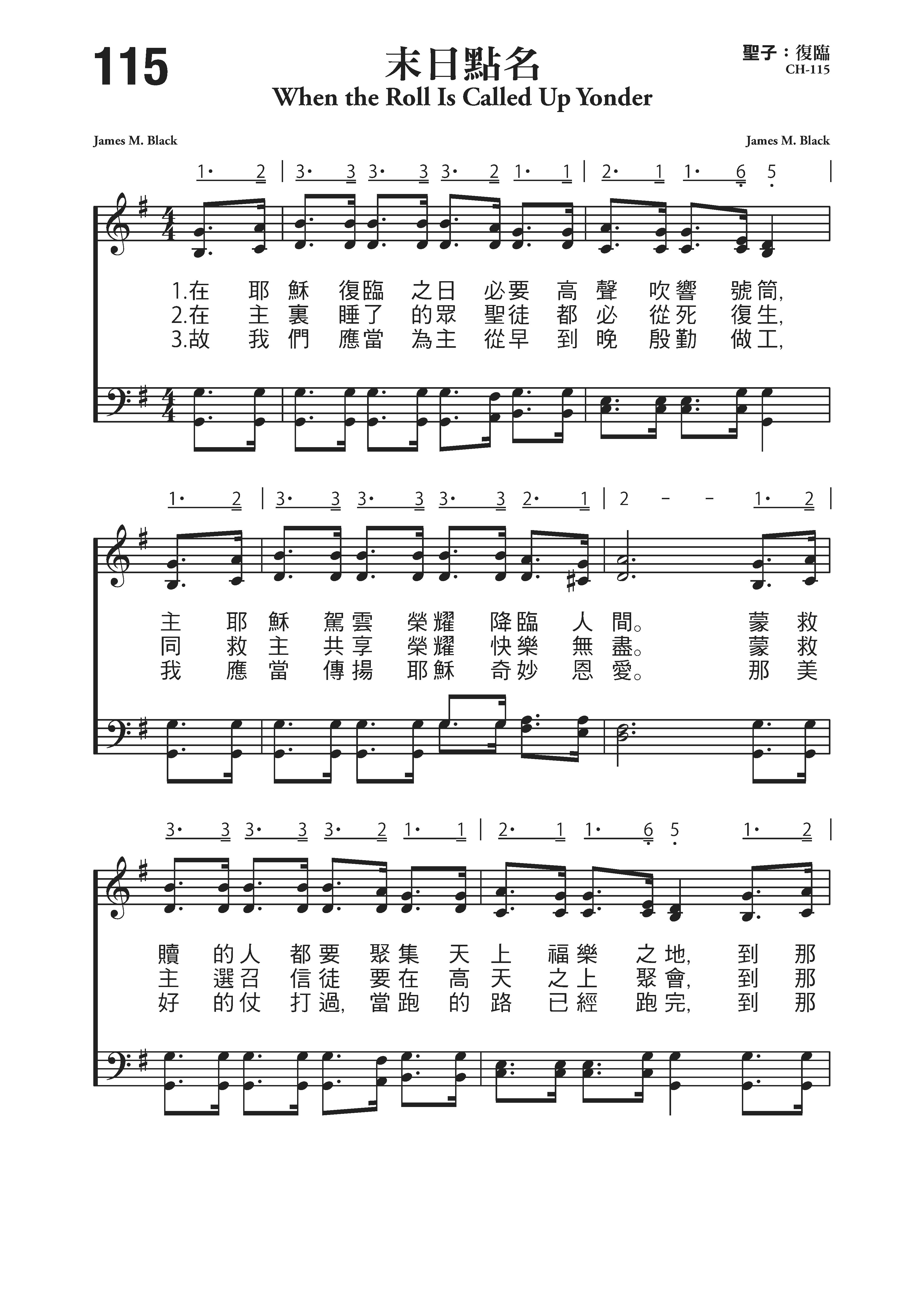 这是一首旋律动听,振奋人心的颂赞诗歌,为我们展示了一幅基督复临的光荣画面。那时号筒要吹响,上帝的儿子在无数天使的簇拥之下从天而降。坟墓裂开了,睡了的义人要在主的召唤下起死复生,和活着的圣徒一起欢迎那位曾舍身救他们的主。