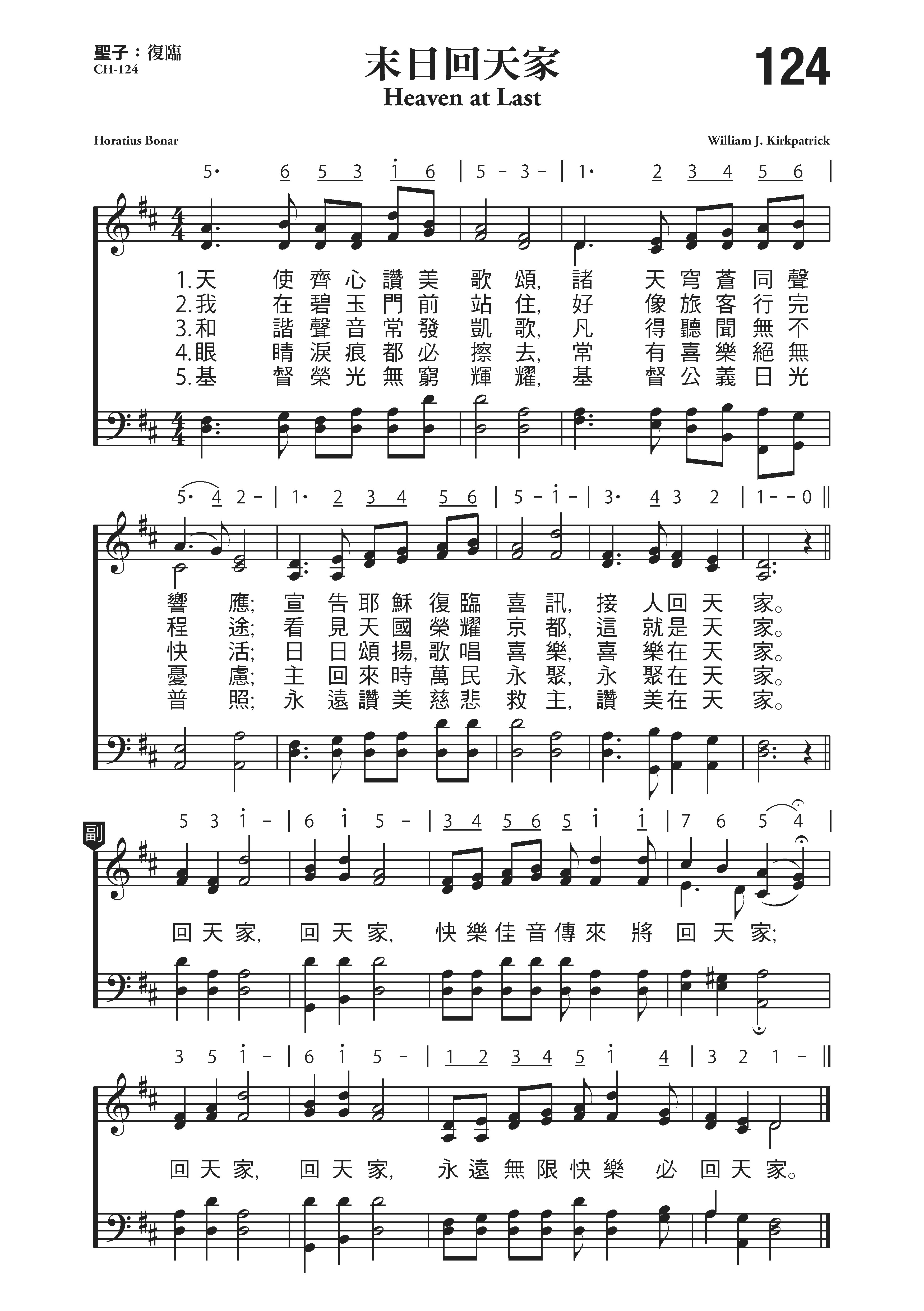 博纳(H.Bonar 1808,12,19-1889,7,31)作词,柯克帕特里克(W.J.Kirkpatrick,1838,2,27-1921,9,20,见34首介绍)作曲