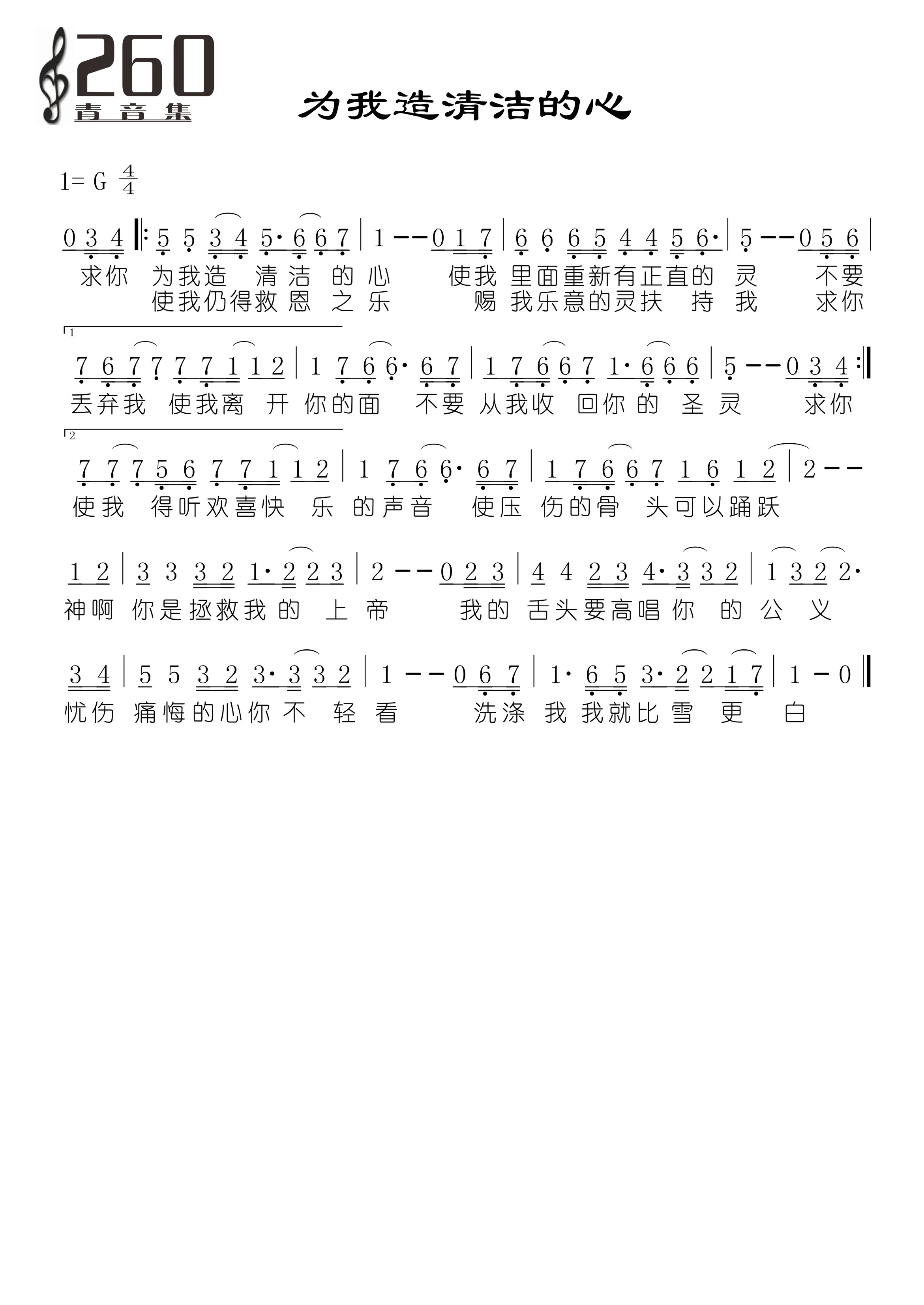 260为我造清洁的心