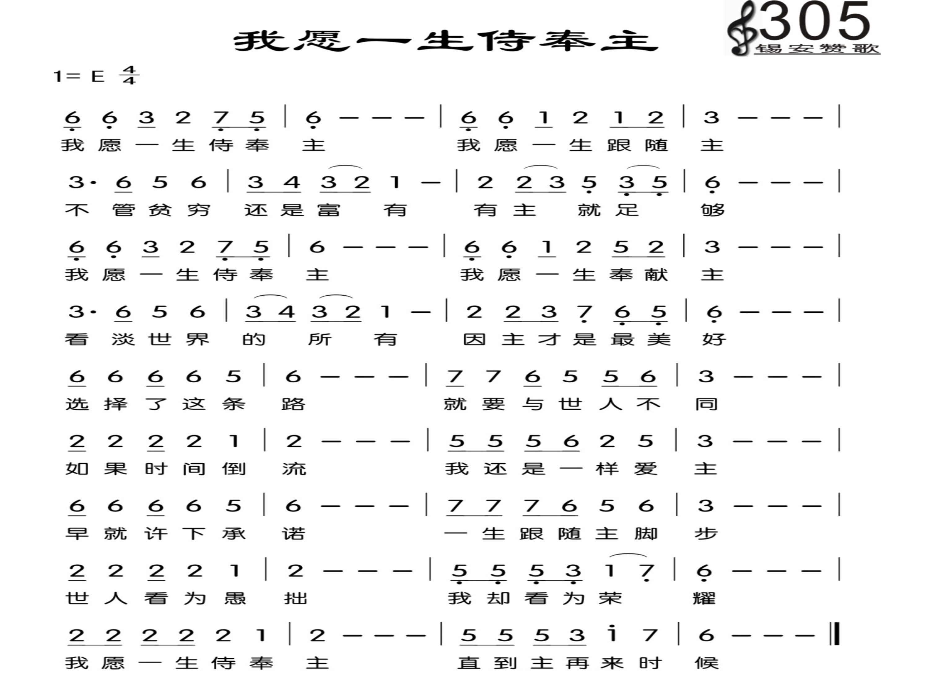 305我愿一生侍奉主
