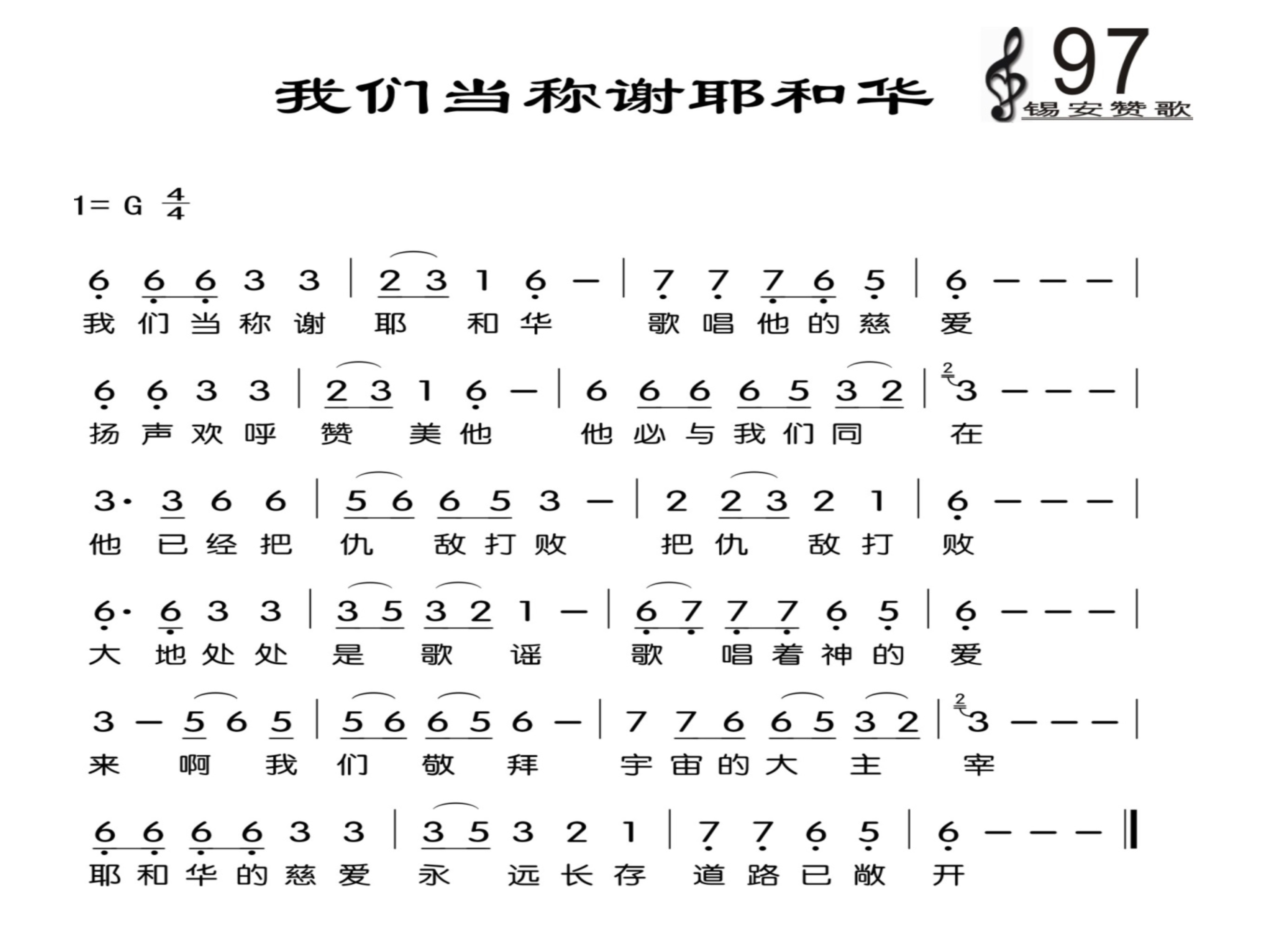 097我们当称谢耶和华