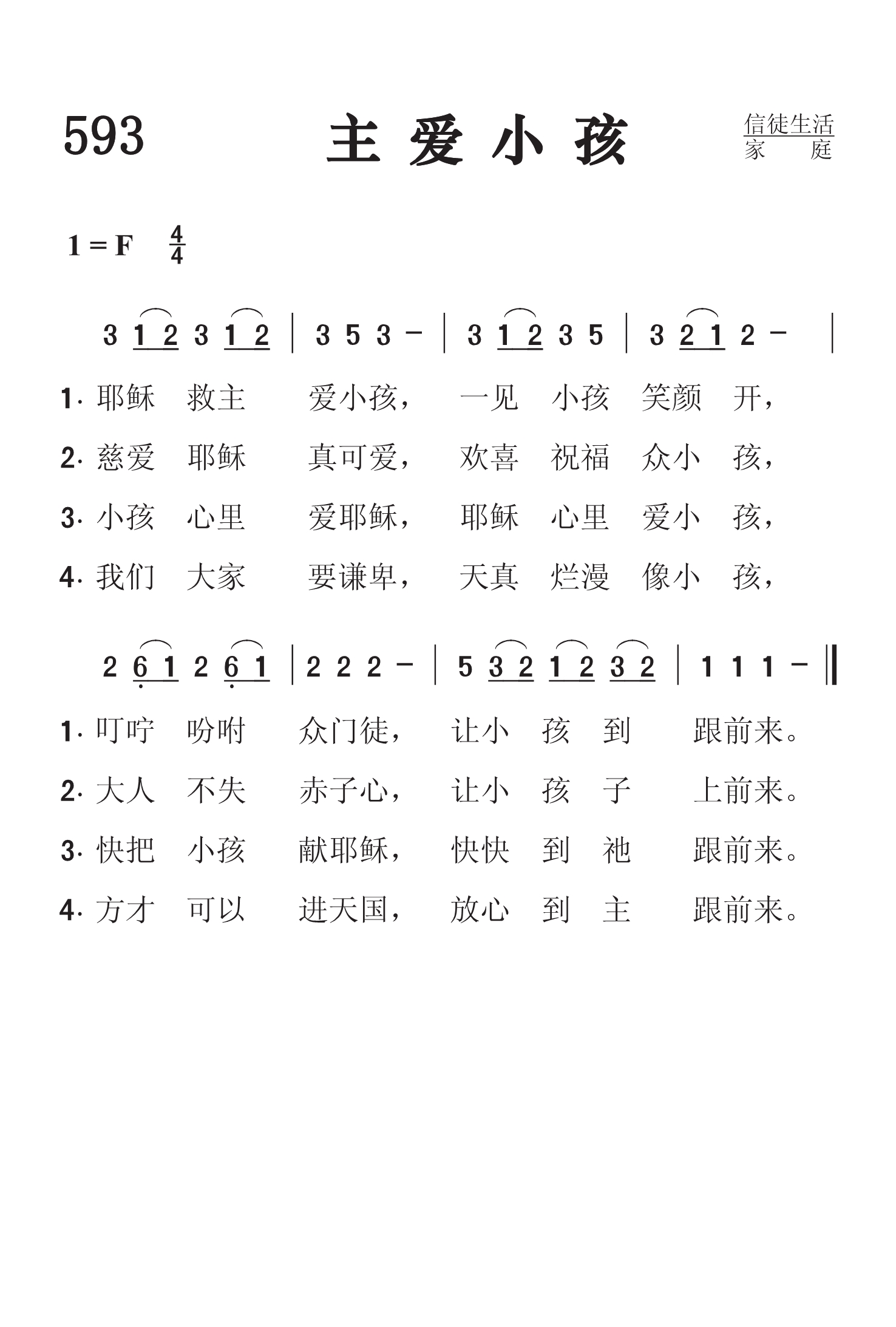 第593首主爱小孩Suffer the Little Children to Come Unto Me (《赞美诗》506版第279首) 赵紫宸(1888-1979)作词,中国曲调 耶稣救主爱小孩,一见小孩笑颜开, 叮咛吩咐众门徒,让小孩到跟前来。 慈爱耶稣真可爱,欢喜祝福众小孩, 大人不失赤子心,让小孩子上前来。 小孩心里爱耶稣,耶稣心里爱小孩, 快把小孩献耶稣,快快到祂跟前来。 我们大家要谦卑,天真烂漫像小孩, 方才可以进天国,放心到主跟前来。 赵紫宸是这首赞美诗配上了中国民间的传统曲调以后,把一群天真可爱,活泼单纯的孩子展示在我们眼前。主耶稣是最喜欢儿童的。祂从来没有禁止儿童到祂面前来。祂希望我们每一个人都变成小孩子的样式,好让祂把天国的宝贵真理启发教导我们的心。 赵紫宸是中国著名的神学家和诗人。他出生于浙江省德清县的一个小商人家庭,1907年受洗加入基督教监哩会,在苏州东吴大学毕业后赴美留学。回国后到母校教授社会学。1625-1951年,任燕京大学宗教学院院长兼牧师。1947年获美国普林斯顿大学荣誉于神学博士学位。1948年当选为世界基督教协进会六主席之一。他对基督教神学,西方哲学和中国古典文学都有很深的造诣,曾写下许多具有学术价值的著作,并对赞美诗的中国本土化作出很大的贡献。 《赞美诗》506版第138首《圣灵歌》(1931年),505版第214首《尊主歌》(1931年)和第277首《信靠羔羊》(1931年)也是赵紫宸作词的。