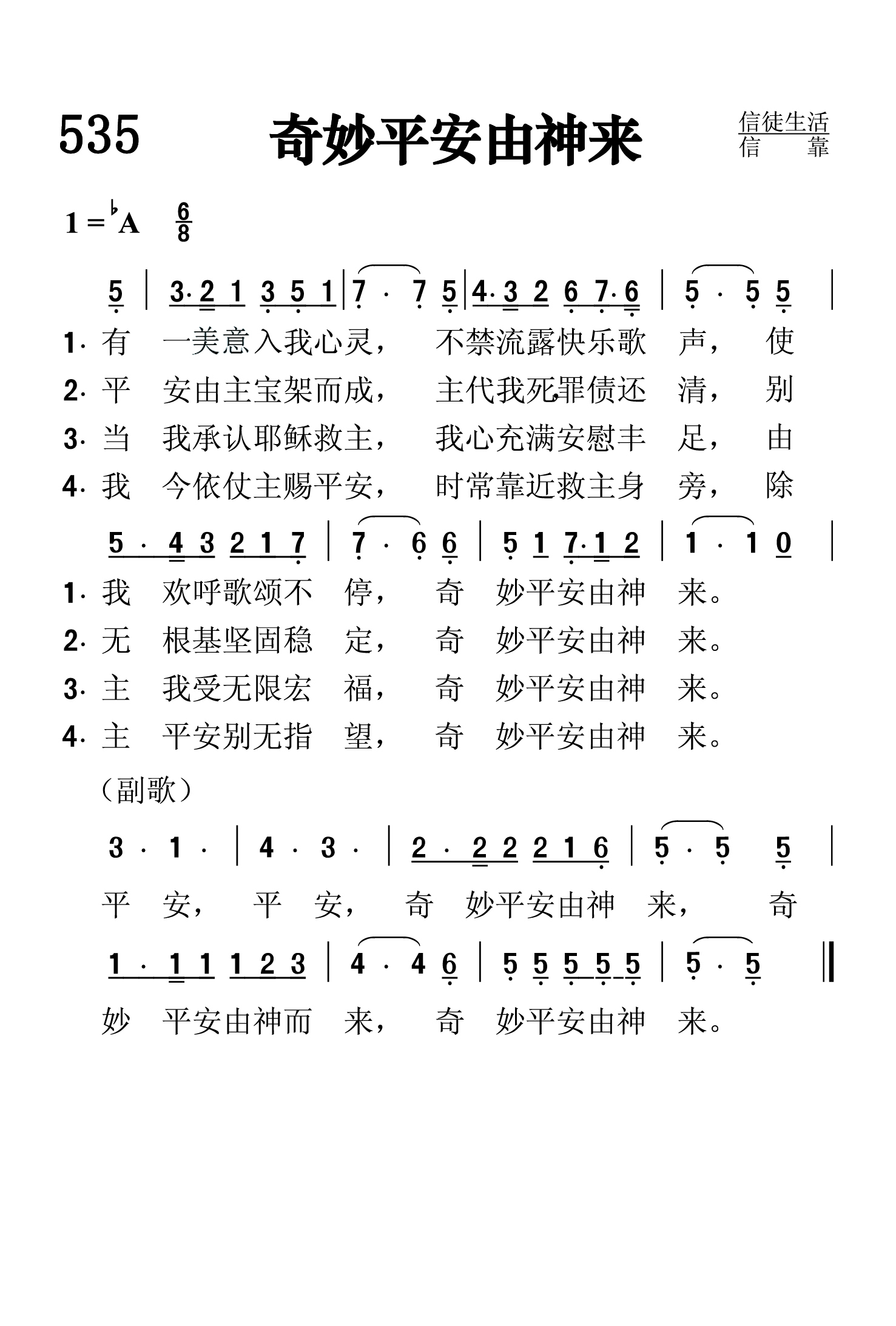 第535首 奇妙平安由神来