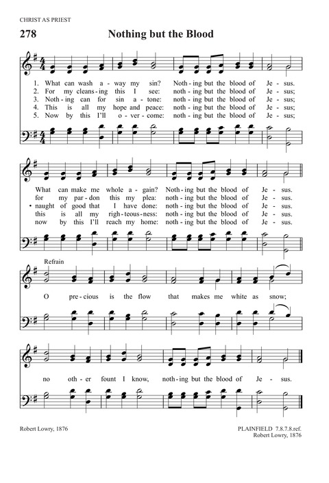 这首节奏明快,旋律动人的赞美诗讴歌了耶稣宝血的奇妙功效。它用非常简要的语言,说明了只有救主才能洗净人身上一切污秽罪孽,使人得称为义的道理。