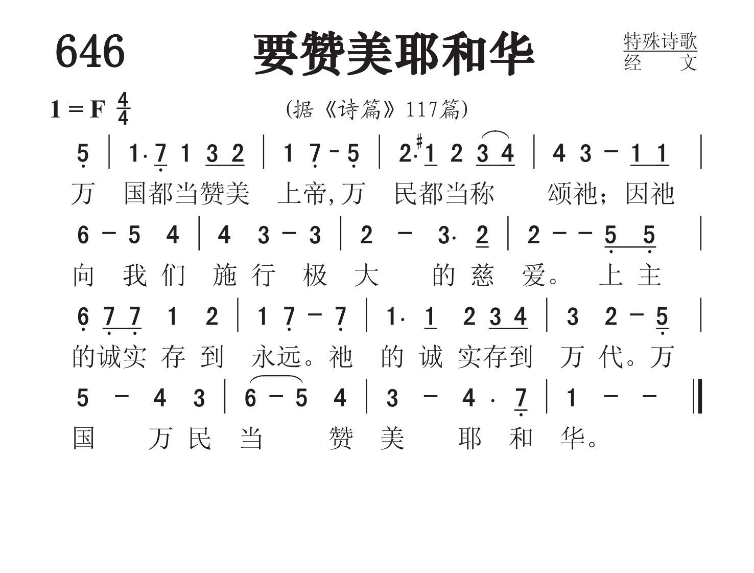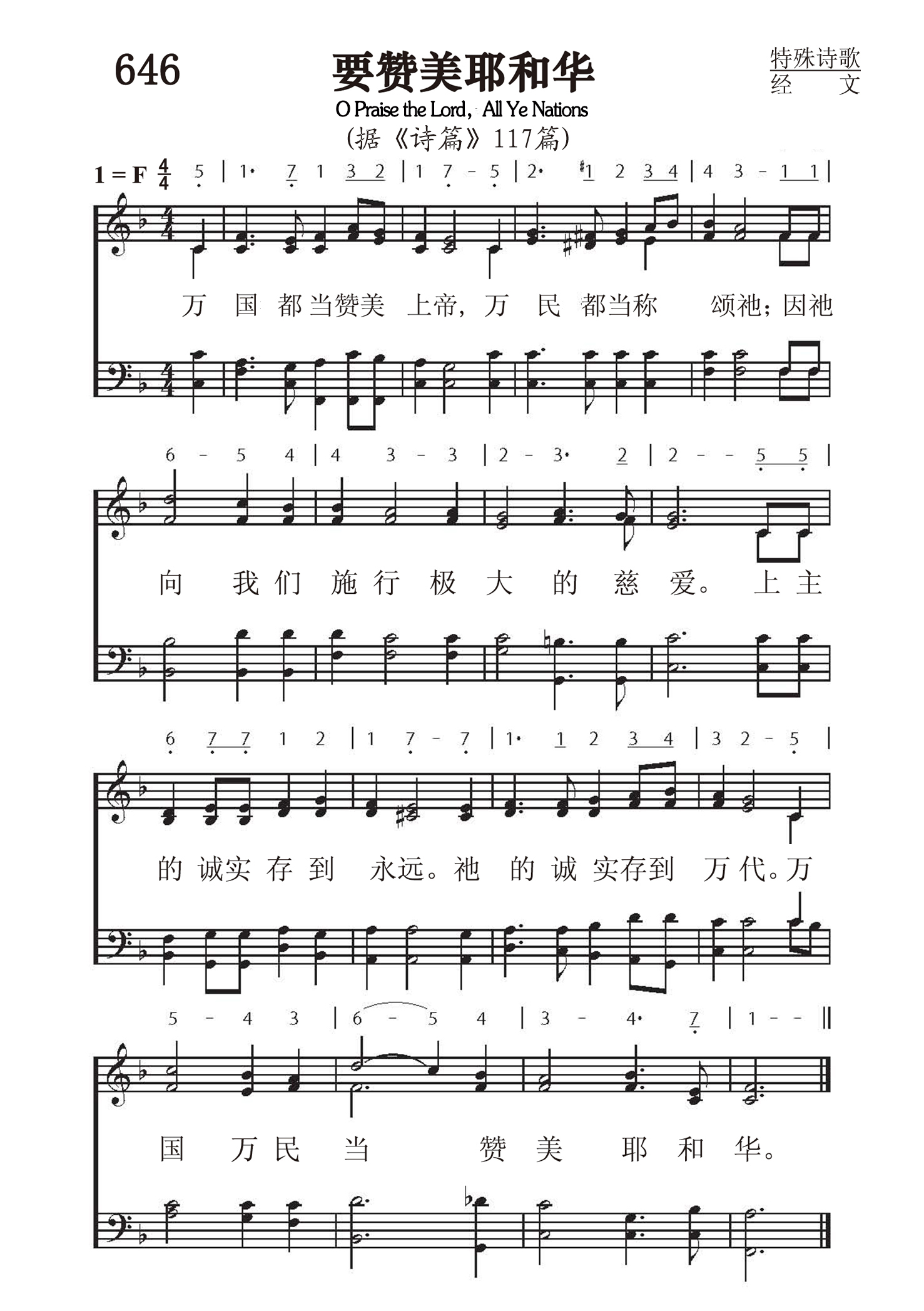 第647首 诗篇第1篇Psalm1 不从恶人的计谋,不站罪人的道路,不坐亵慢人的座位。惟喜爱耶和华的律法,昼夜思想,这人便为有福。他要像一棵树栽在溪水旁,按时候结果子,叶子也不枯干。凡他所作的,尽都顺利。恶人并不是这样,乃像糠秕被风吹散。因此当审判的时候,恶人必站立不住,罪人在义人的会中,也是如此。因为耶和华知道义人的道路。恶人的道路,却必灭亡。