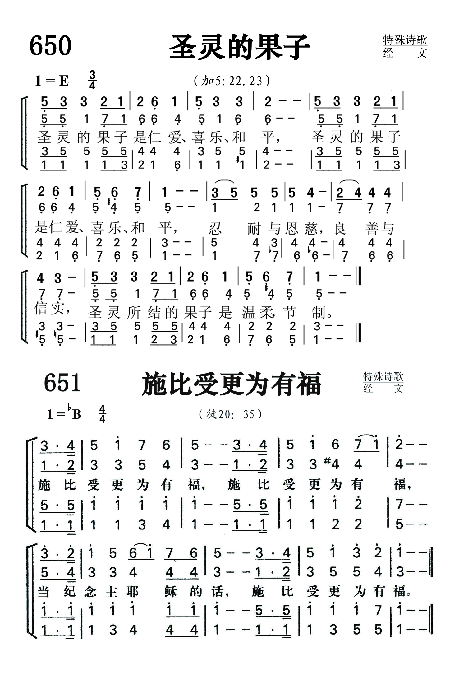 第651首施比受更为有福It Is More Blessed to Give 徒20:35;谢友王(Andrew Y.Hslch)作曲(1939年作于哈尔滨) 施比受更为有福,施比受更为有福, 当记念主耶稣的话,施比受更为有福。