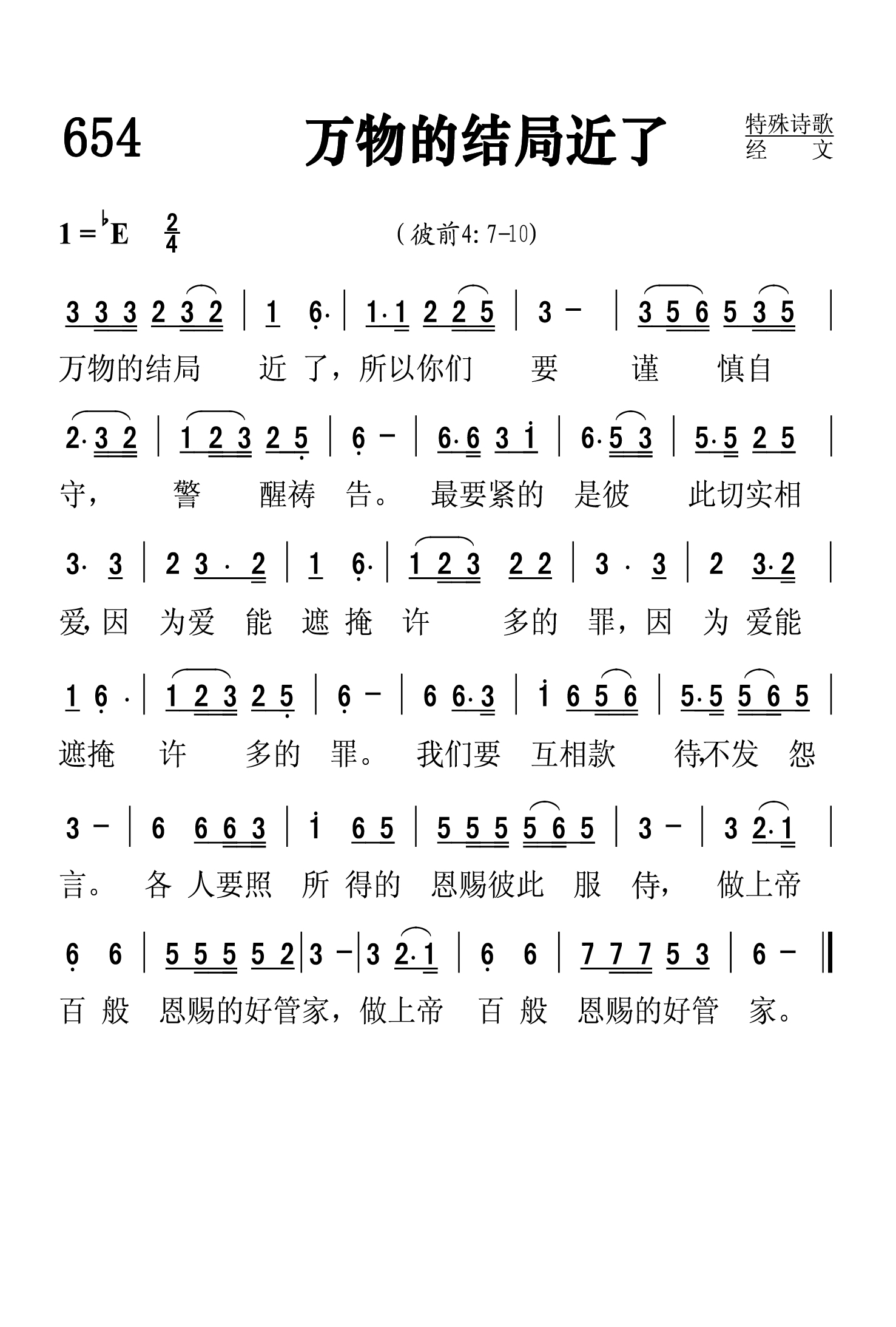 第655首万军之耶和华《颂赞圣诗》564首 Jehovah of Hosts (诗84:1-12) 万军之耶和华啊,祢的居所何等可爱。我羡慕渴想耶和华的院宇。我的心肠,我的肉体,向永生神呼吁万军之耶和华我的王,我的神啊,在你祭坛那里,麻雀为自己找着房屋。燕子为自己找着抱雏之窝。如此住在你殿中的,便为有福。他们仍要赞美祢。靠你有力量心中想往锡安大道的,这人便为有福。他们经过流泪谷,叫这谷变为泉源之地。并有秋雨之福,盖满了全谷。他们行走,力上加力,各人到锡安朝见神。耶和华万军之神阿,求你听我的祷告。雅各的神啊,求你留心听。神啊,祢是我们的盾牌。求祢垂顾观看祢受膏者的面。在祢的院宇住一日,胜似在别处住千日。宁可在我神殿中看门,不愿住在恶人的帐棚里。因为耶和华神是日头,是盾牌,要赐下恩惠和荣耀。祂未尝留下一样好处,不给那些行动正直的人。万军之耶和华啊,倚靠祢的人,便为有福。