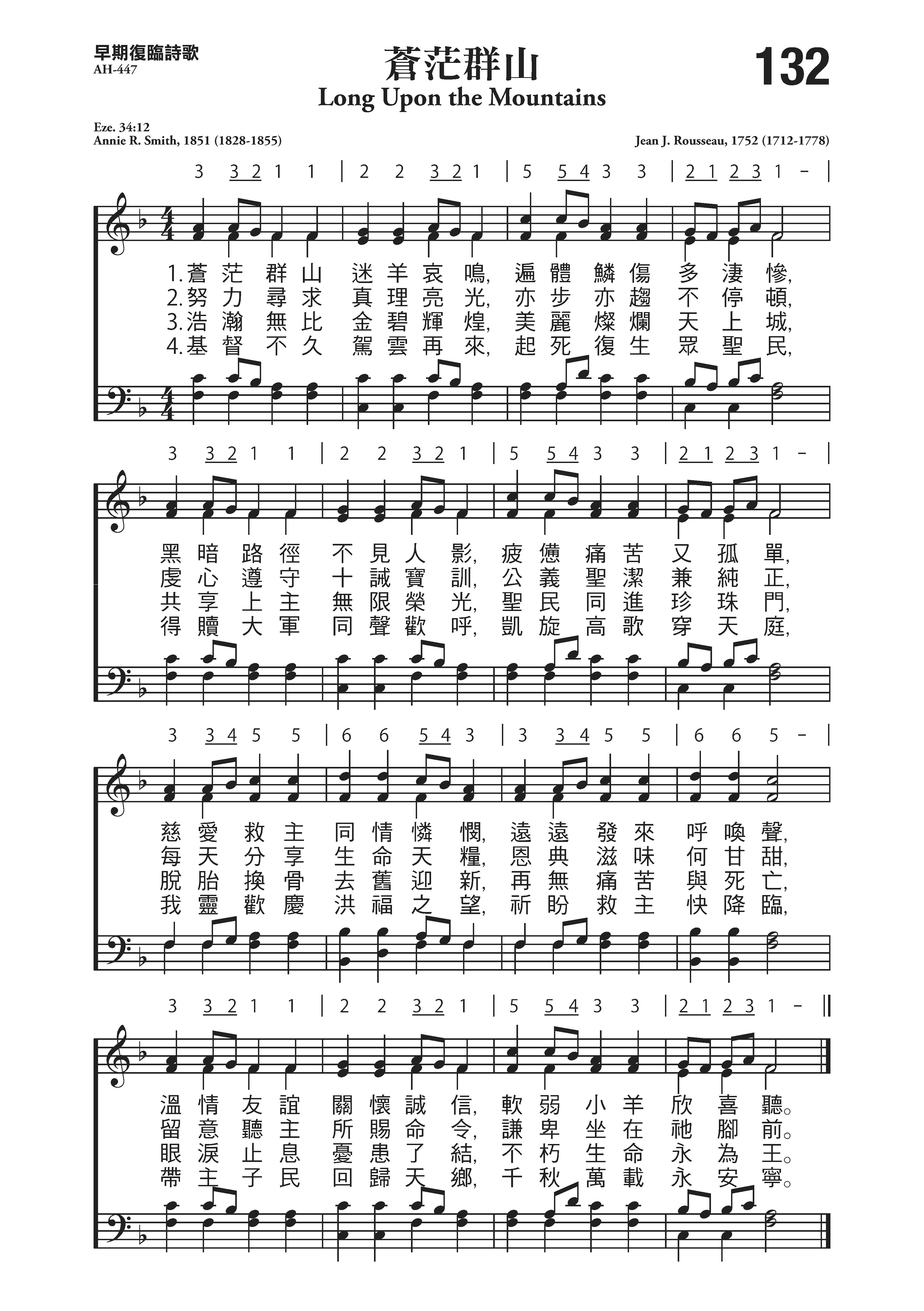 安妮.史密斯(1828,3,16-1855,6,26,见《赞美诗》第130首介绍)作词(1853年);让.雅克.卢梭(Jean J.Rousseau,1712-1778)作曲(1753年)