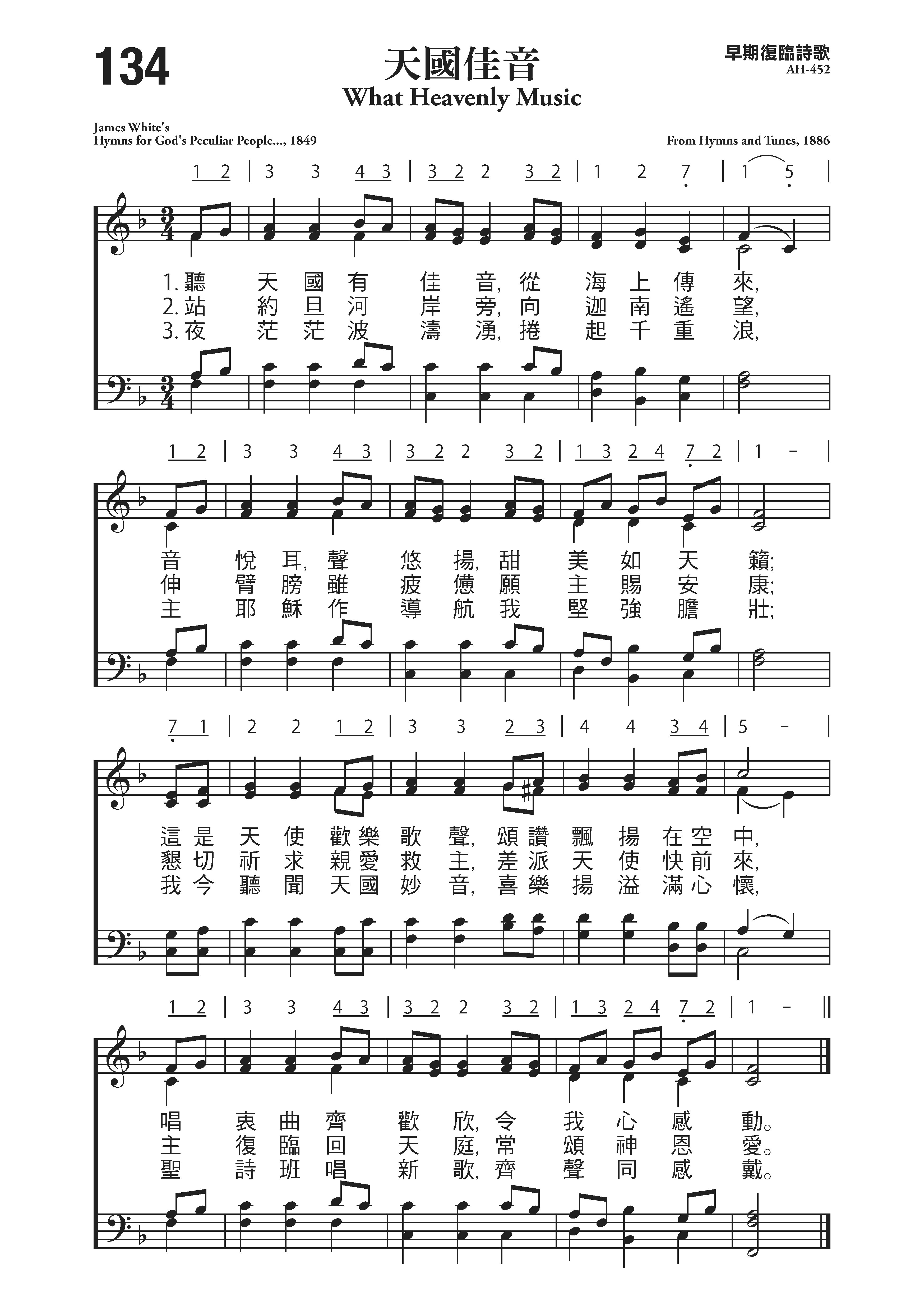 歌词来自怀雅各(1821-1881)所编《上帝特选子民诗歌》(1849年),曲谱来自1886年出版的《圣诗和灵歌》