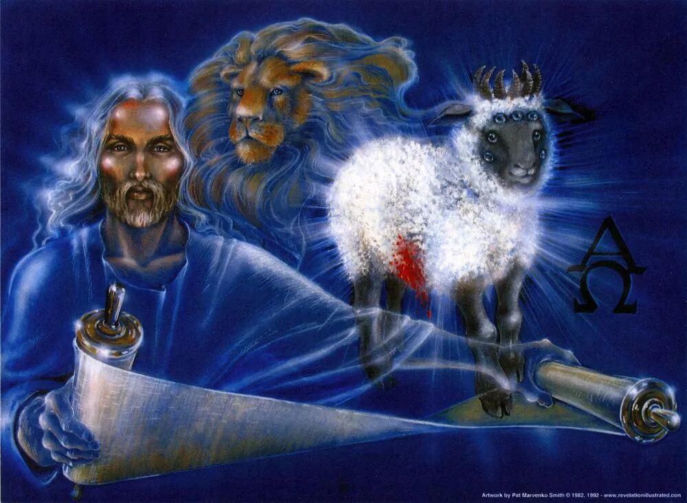 我们接下来看,当天使告诉约翰,有这么一位,犹大支派的狮子大卫的根,祂将要来接过这个律法书、展开书卷、登基做王之时,约翰在异象中转眼一看说:启5:6我又看见宝座与四活物并长老之中,有羔羊站立,像是被杀过的,有七角七眼,就是上帝的七灵,奉差遣往普天下去。这羔羊前来,从坐宝座的右手里拿了书卷,约翰听说是这个大卫的根,犹大支派的狮子要出现,要来,可是他转眼一看呢,看见的却是一只羔羊。狮子是百兽之王,可是羔羊是那样的软弱柔顺,两者形成极大的反差。如何解释这两个完全相反的形象,它们同时集中在耶稣一个人的身上呢?灵感之笔在《使徒行述》第57章“启示录”第31段写道:约翰看见救主以“犹大支派的狮子”和“像是被杀过的羔羊”的姿态出现。这些表号标志着无穷能力与舍己大爱的结合。凡拒绝上帝恩典的人所必要惧怕的“犹大支派的狮子”,在顺从和效忠的人却是“上帝的羔羊”。那向一切违反上帝律法的人表示恐怖和愤怒的火柱,在那些遵守祂诫命的人却象征着光明、怜悯与拯救。那击打悖逆之徒的强有力的膀臂,必以大能拯救忠实的儿女。每一个保守信心的人都必得救。“祂要差遣使者,用号筒的大声,将祂的选民从四方,从天这边到天那边,都招聚了来。”预言之灵的这段话非常恰当地解释了犹大支派的狮子和被杀过的羔羊,这两者之间的完美的结合。原来“犹大支派的狮子”的形象是对于拒绝上帝恩典的人所表现出来的上帝的公正、全能和威严;而“上帝的羔羊”则是向上帝的子民,所表现出来的舍己的大爱。