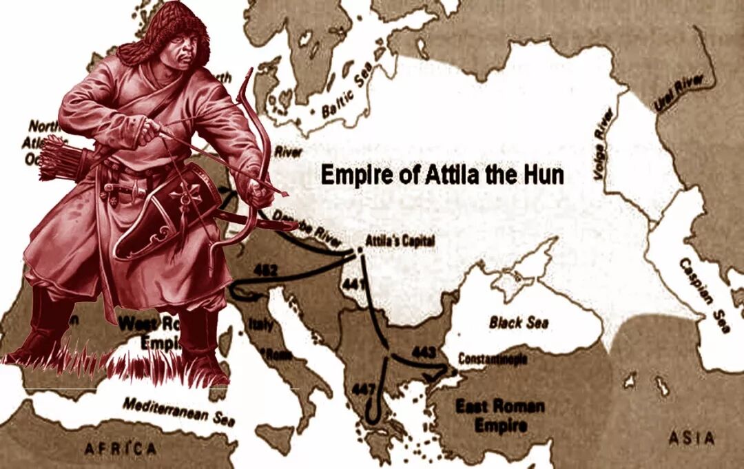匈奴人他不是日耳曼民族,通常认为这个匈奴兴起的地方,就是在今天我们所说的蒙古。阿提拉当时率领70万马背上的骑兵,所向披靡。他也是非常得野蛮,走过的地方都把城市毁灭得干净。如果不给他大量进贡的话,那么必然要遭受他毁灭性的打击。据史书记载说,阿提拉经常自夸,他说凡是他的骑兵踏过的地方,就不会有草再长出来;而且他自称是“上帝之鞭”,击打地上的人。从当时来说,整个欧洲从伏尔加河到多瑙河,都被阿提拉的游牧民族、被他的军队所侵蚀占有。据《罗马帝国衰亡史》介绍说阿提拉的军队大概有10万到30万人战死沙场,那么罗马在他的强大攻势之下,也是向他乞和,献上庞大的贡品。公元451年,高卢之战是阿提拉最大的一战。两年之后,这位成为当时“世界的恐怖”的阿提拉,死于行军途中,那么匈奴帝国也就随即瓦解。