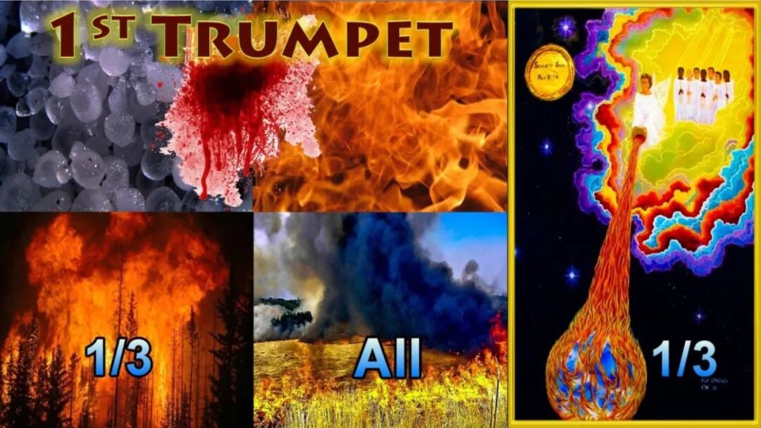 在传统上,我们通常把第一号吹号的时间,理解为是公元395年-公元410年;经文中间提到了“雹子”和“火”和“血”,“雹子”显然就是冰块,它代表从北方,从寒冷的地方而来的;“火”和“血”这里指交叉着战争。“地的三分之一和树的三分之一被烧了,一切的青草也被烧了”,从这里我们看到了“地”、“树”、“青草”,类似语言同时出现,最早是在《创世记》的伊甸园里面;那么这是不是也把我们引向了一个园子呢?