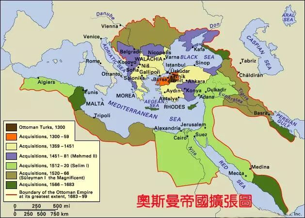 地中海在十五世纪的时候,有三个大的势力:一个是穆斯林奥斯曼的势力;一个是拜占庭帝国,也就是东罗马的势力;再有一个就是在西部的神圣罗马——西欧;这三个势力中,奥斯曼帝国把拜占庭给灭了,就剩下其中的两个势力。也就是1453年以后,就剩罗马和土耳其在继续的争战。