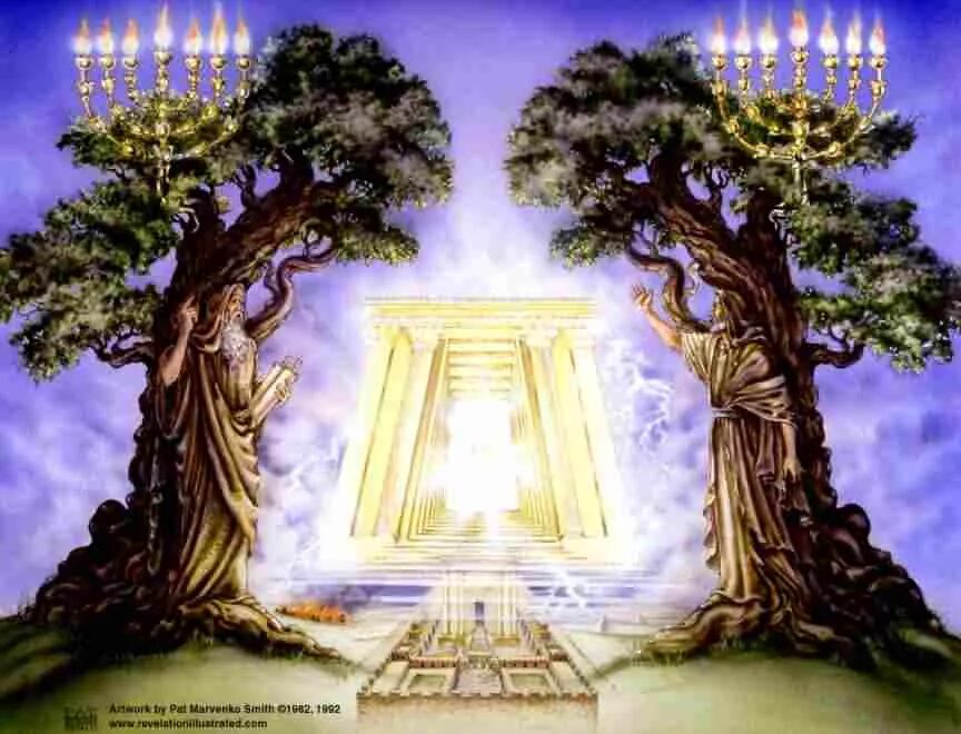 启11:4 “他们就是那两棵橄榄树,两个灯台,立在世界之主面前的。”
