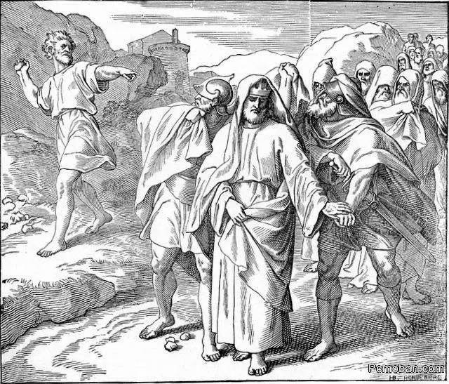 撒下16:5-6“大卫王到了巴户琳,见有一个人出来,是扫罗族基拉的儿子,名叫示每。他一面走一面咒骂,又拿石头砍大卫王和王的臣仆;众民和勇士都在王的左右。”这个示每,虽然王的众民和勇士都在边上,他也无所谓,他当时不认识这个王。这就让我们想到彼得最后三次不认主。彼得这个做法也就像示每一样。耶稣那时可以说有天使与他同在,只是彼得看不见,他发誓说:我不认得这个人,不认得这个王。